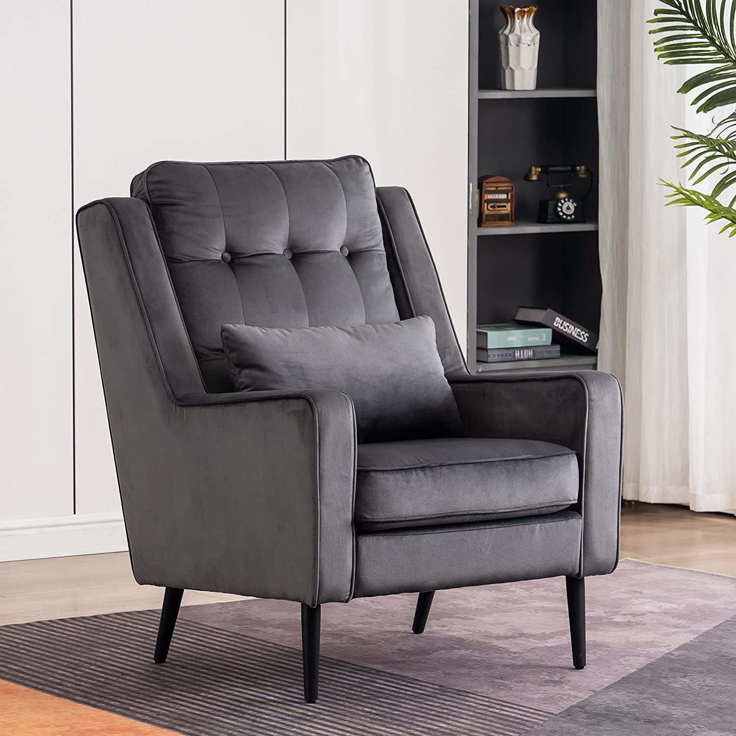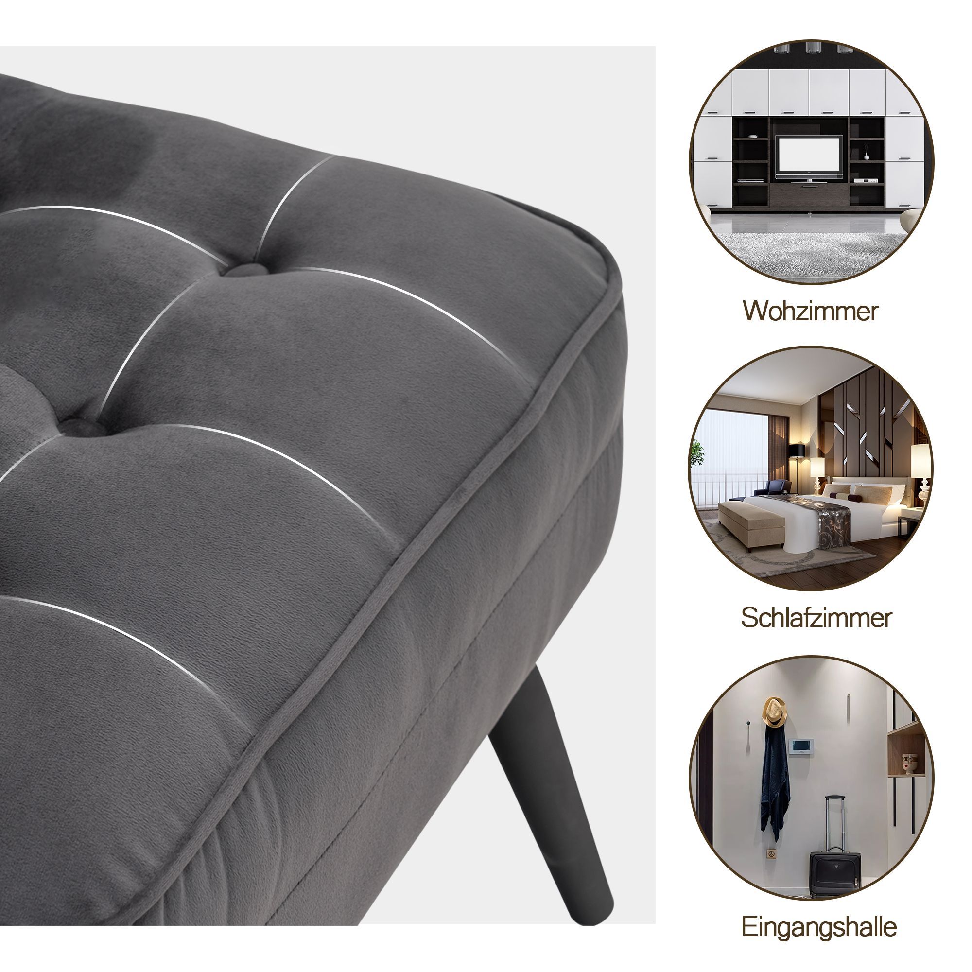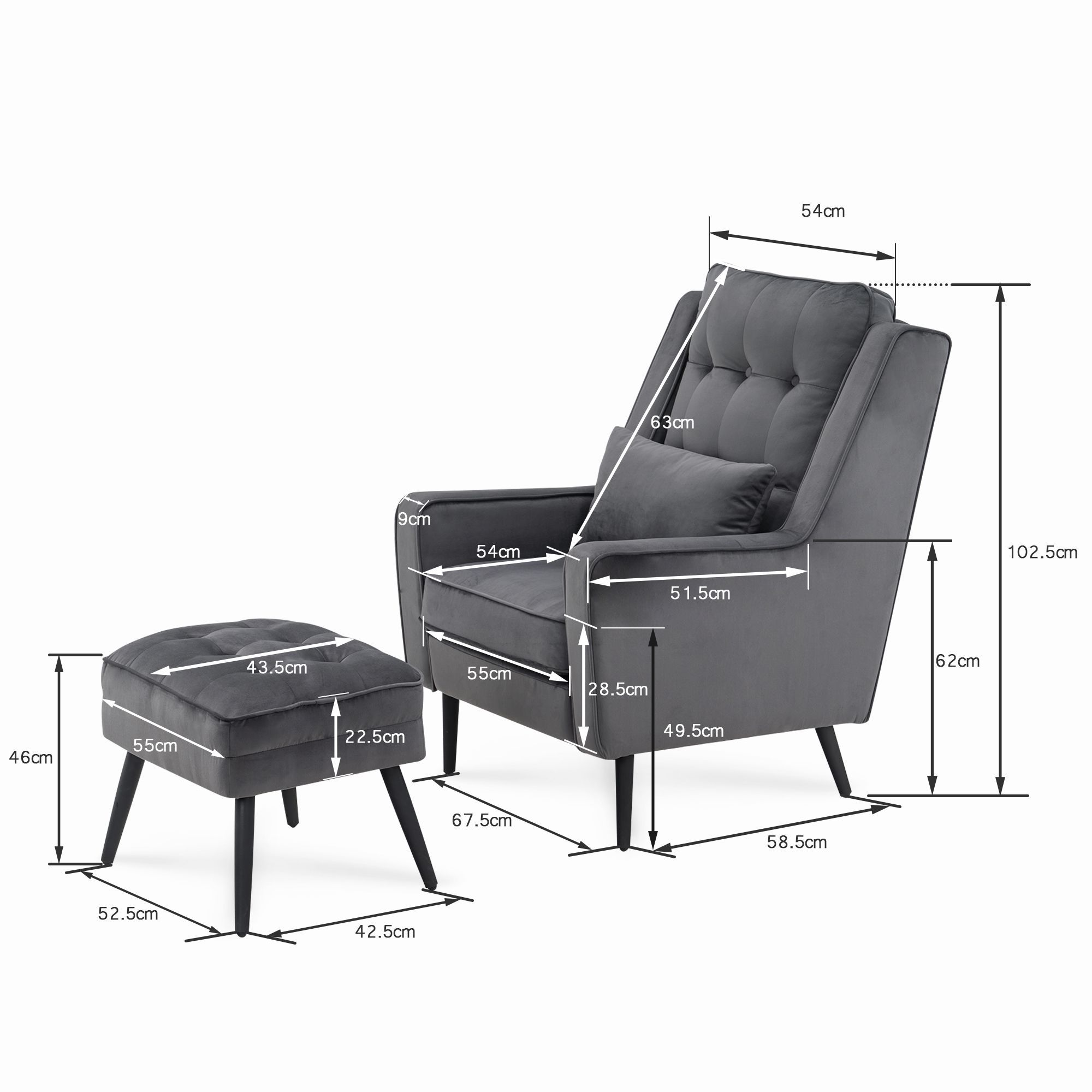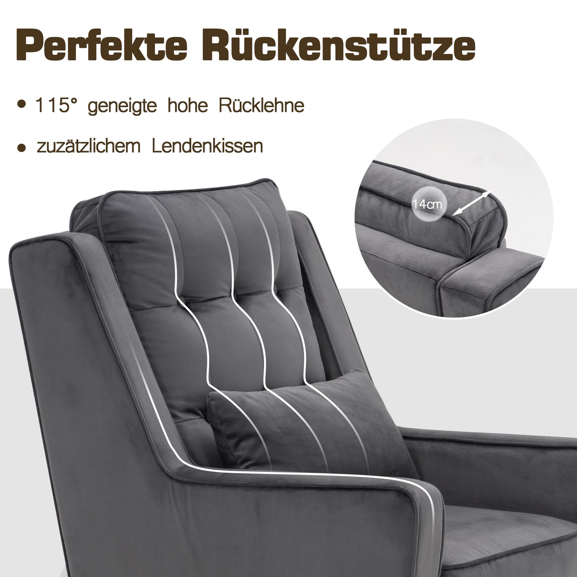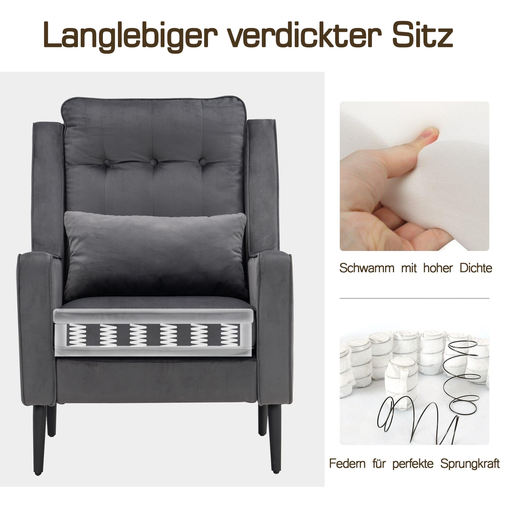 MCombo Ohrensessel mit Hocker Samt-Bezug, mit Kissen & Metallfüße für Wohnzimmer,7277
