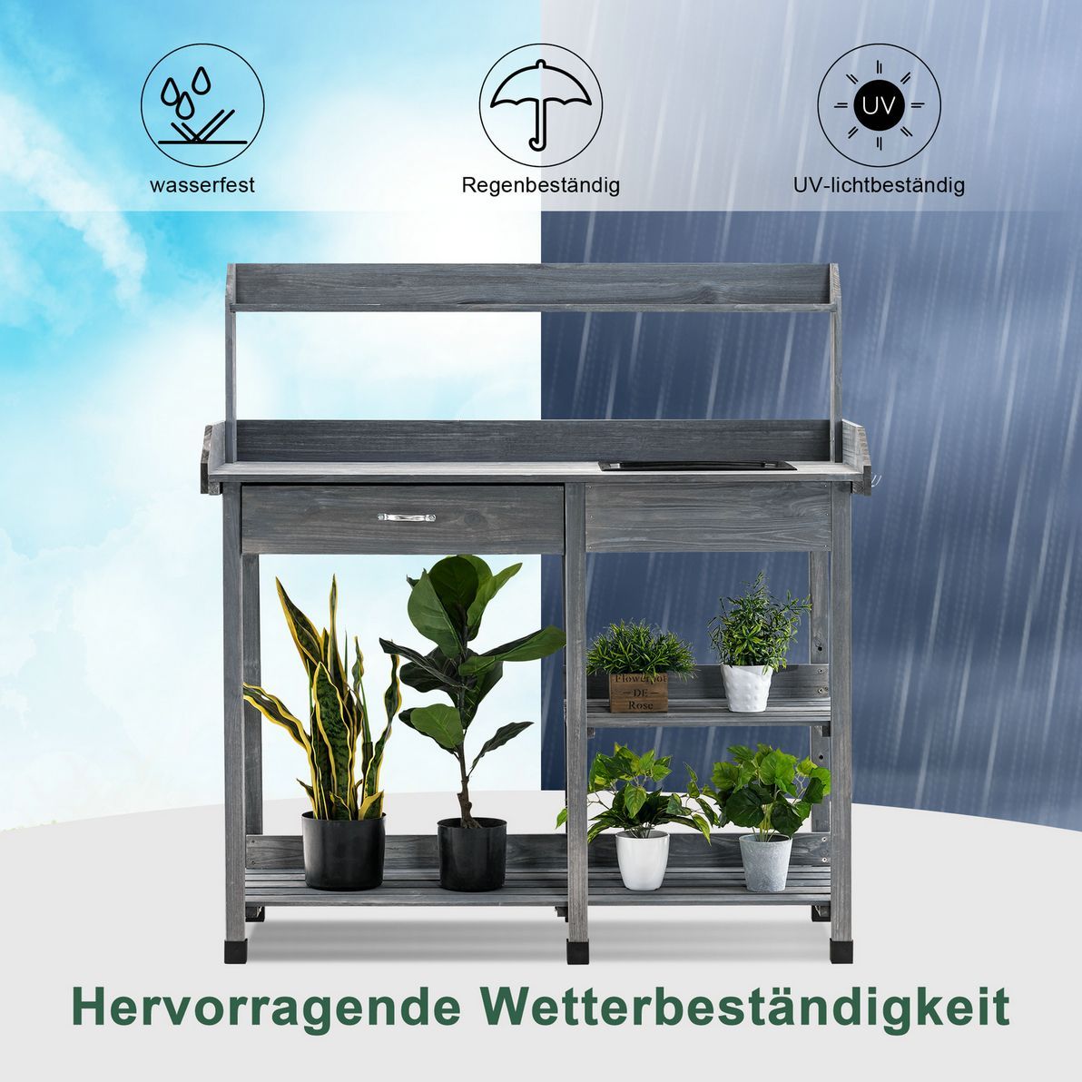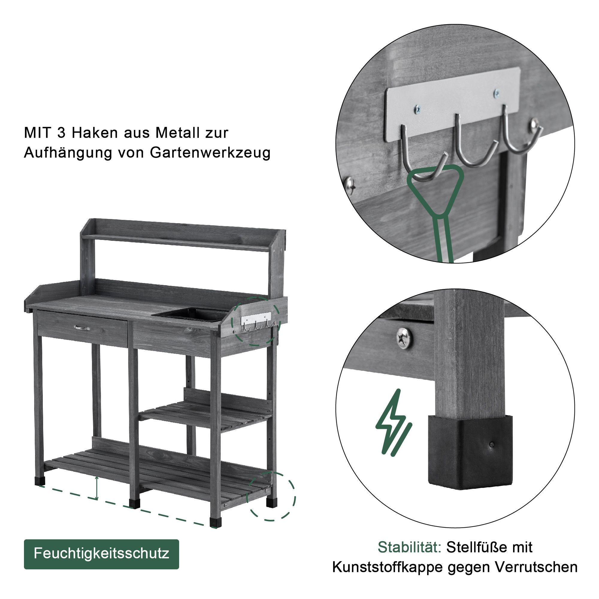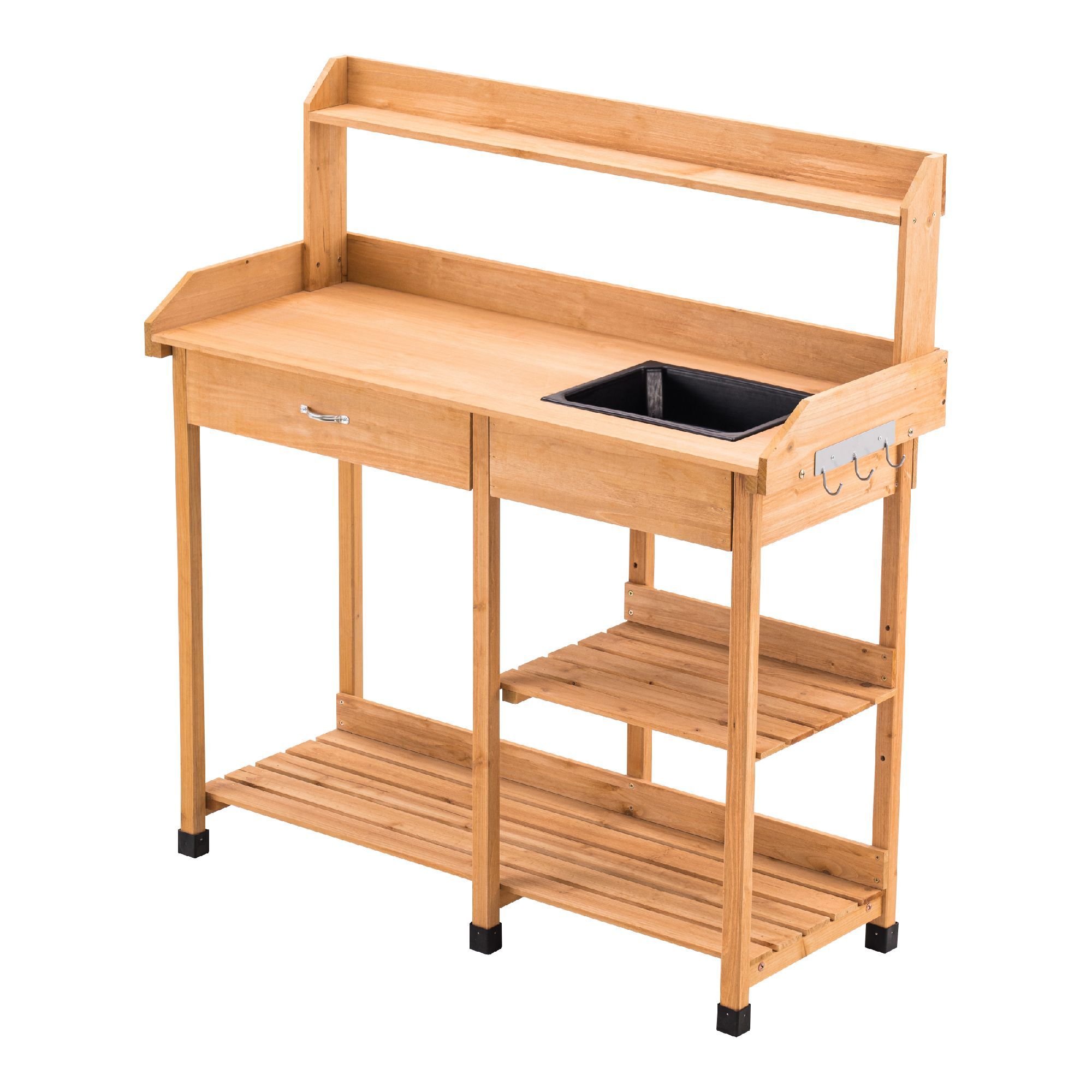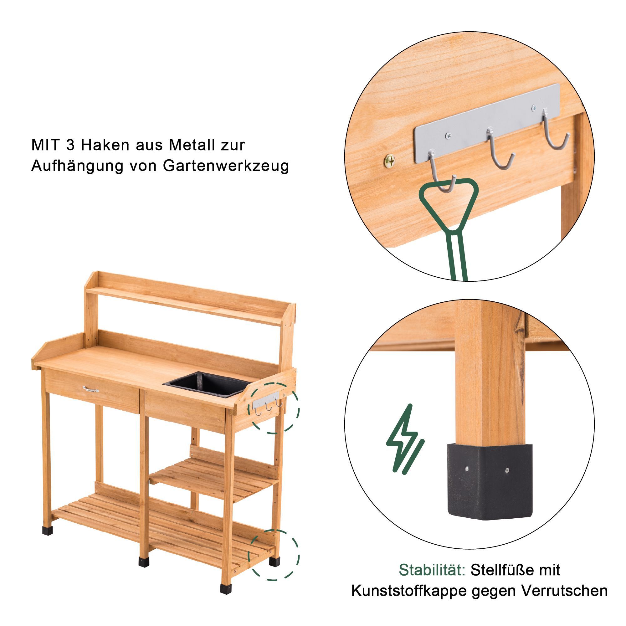 MCombo Pflanztisch Gärtnertisch Blumentisch mit Waschbecken Ablage Holz 0458