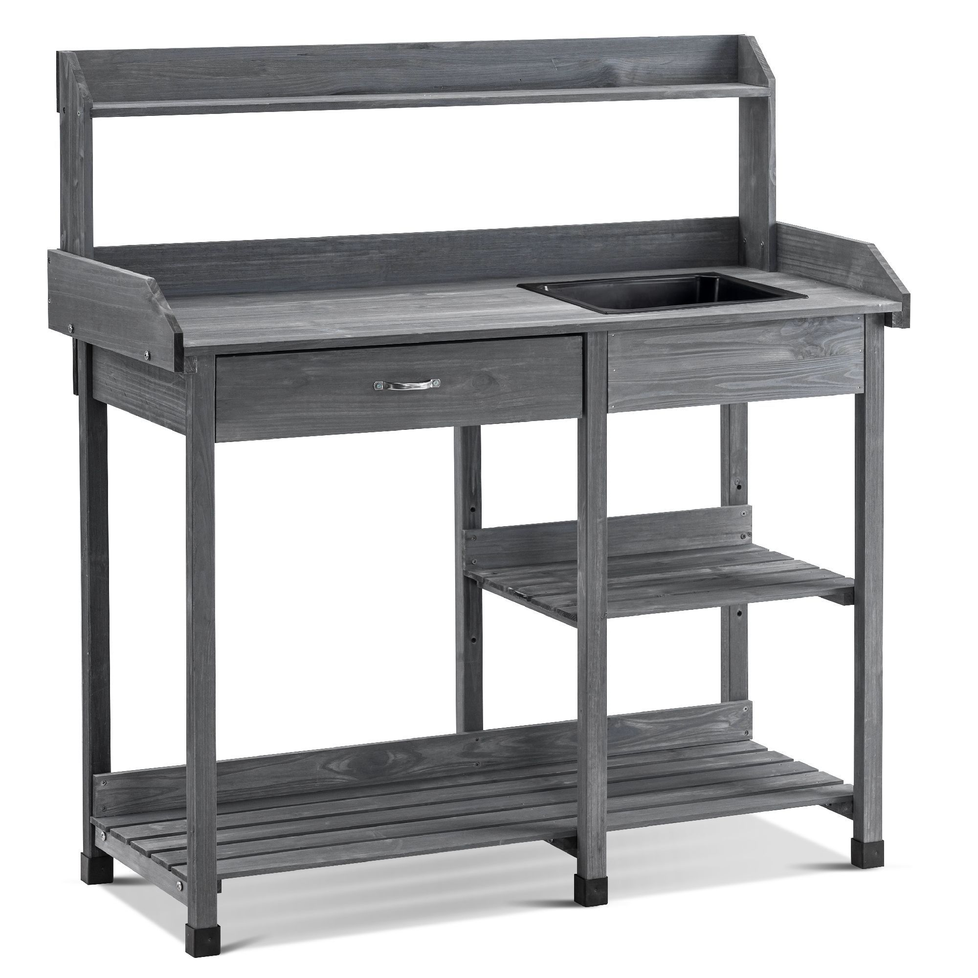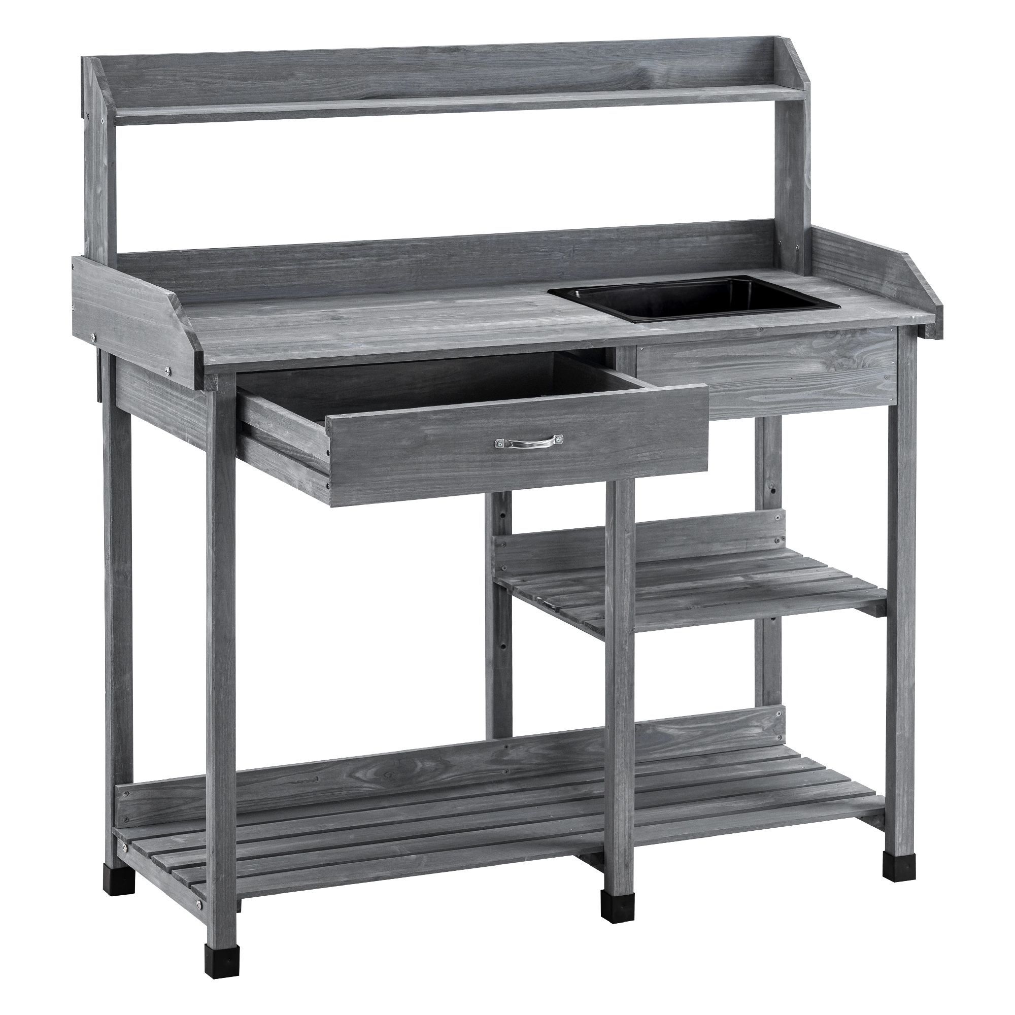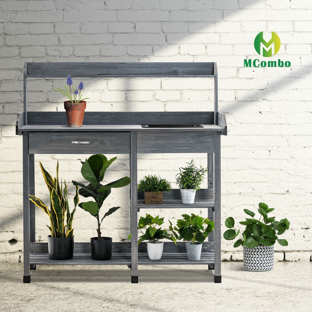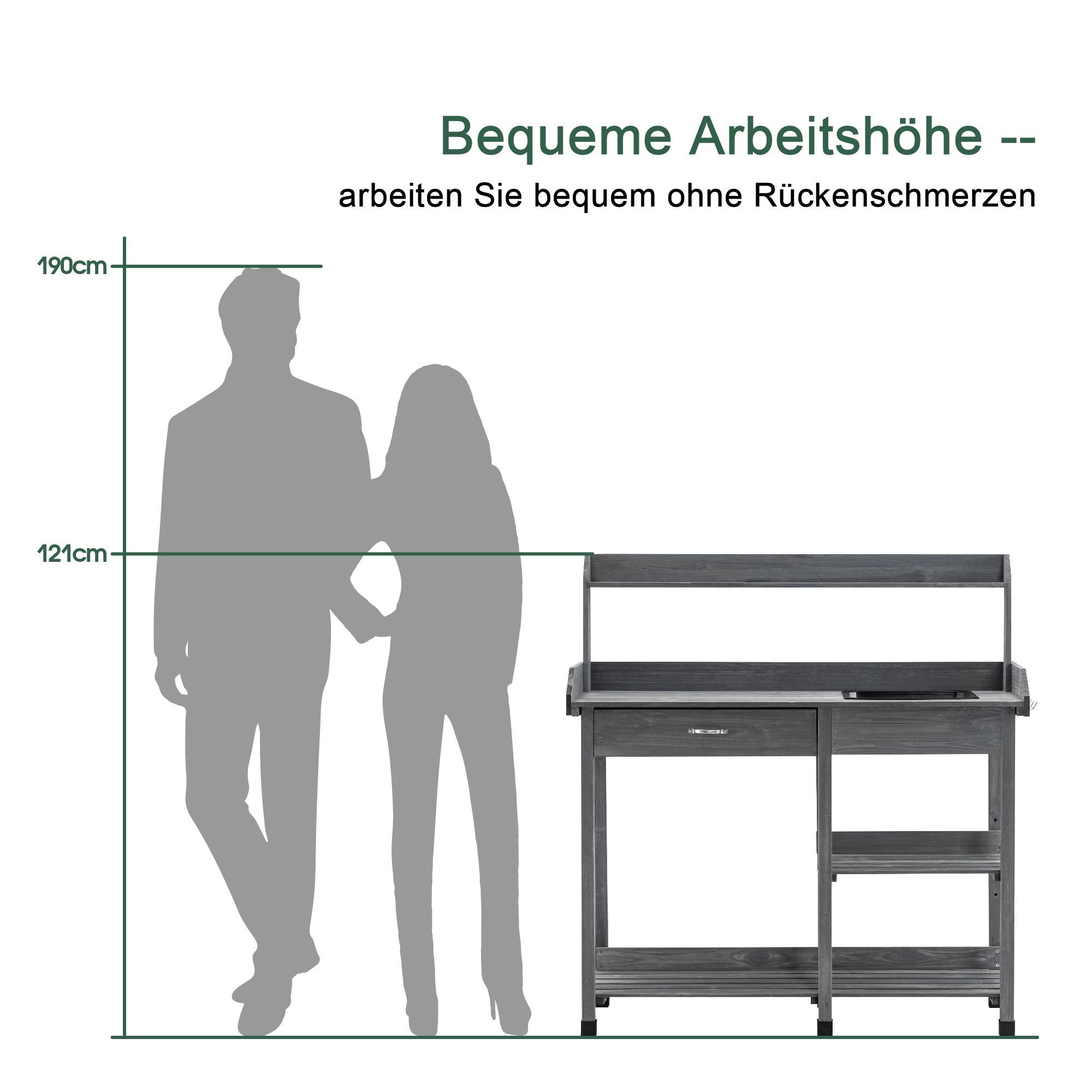 MCombo Pflanztisch Gärtnertisch Blumentisch mit Waschbecken Ablage Holz 0458