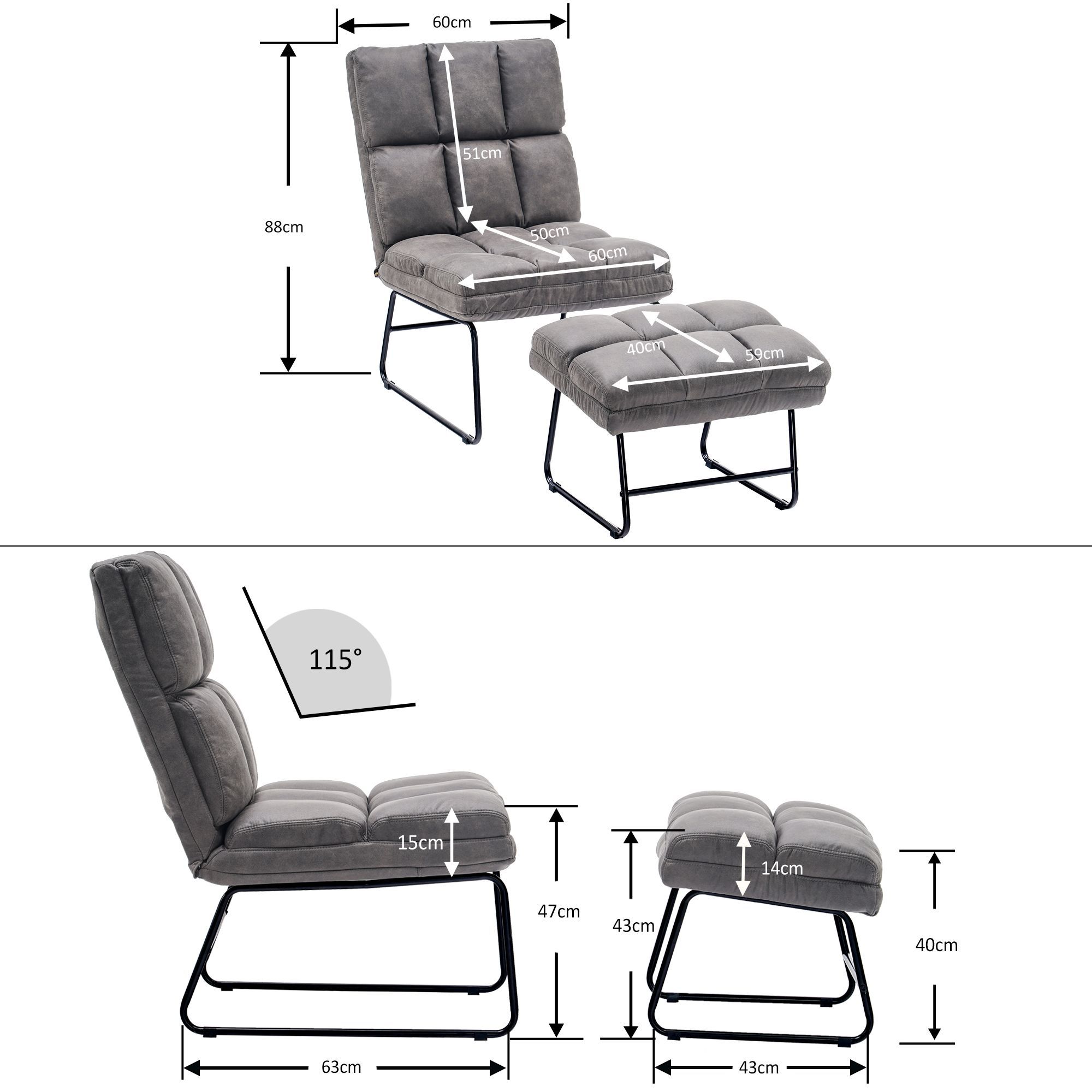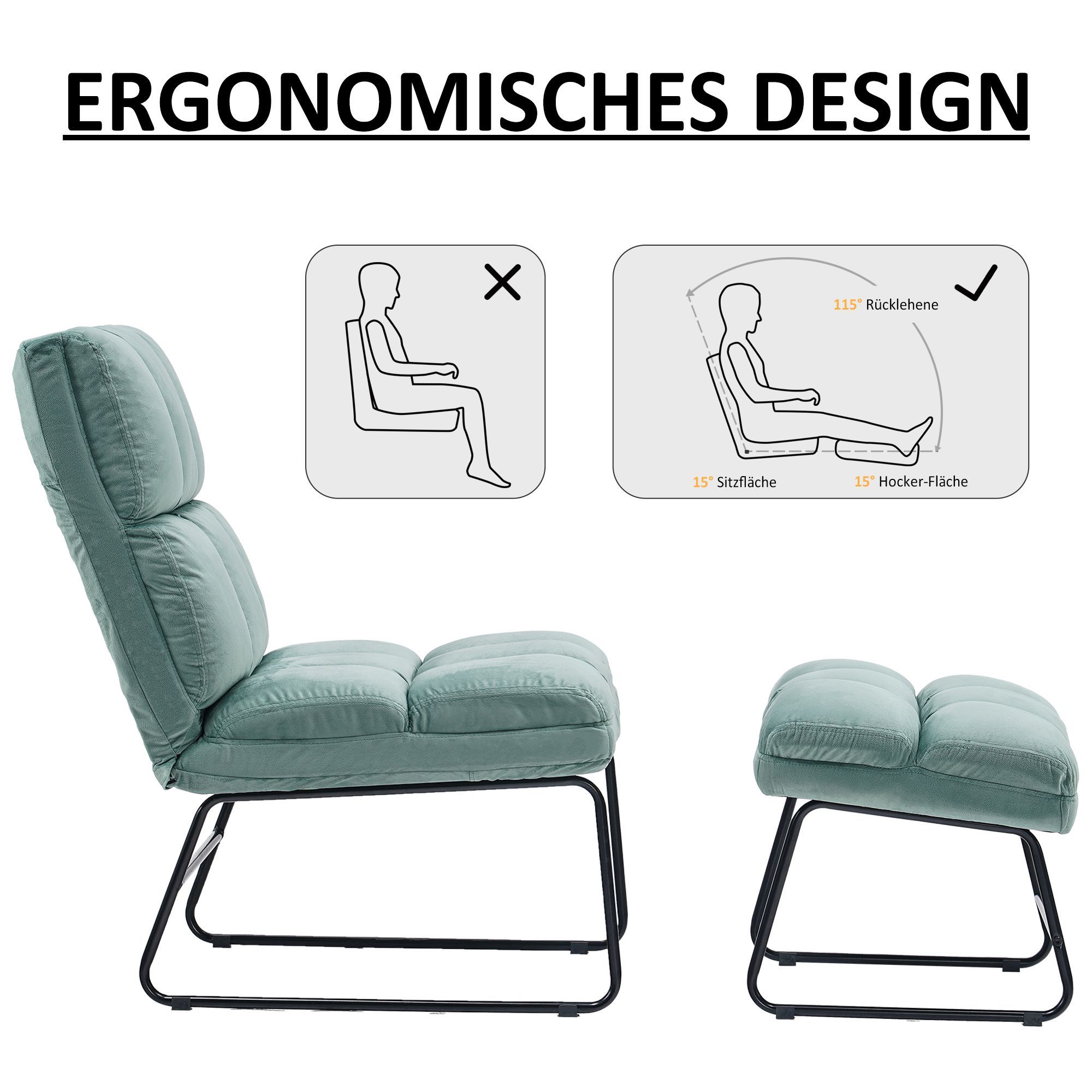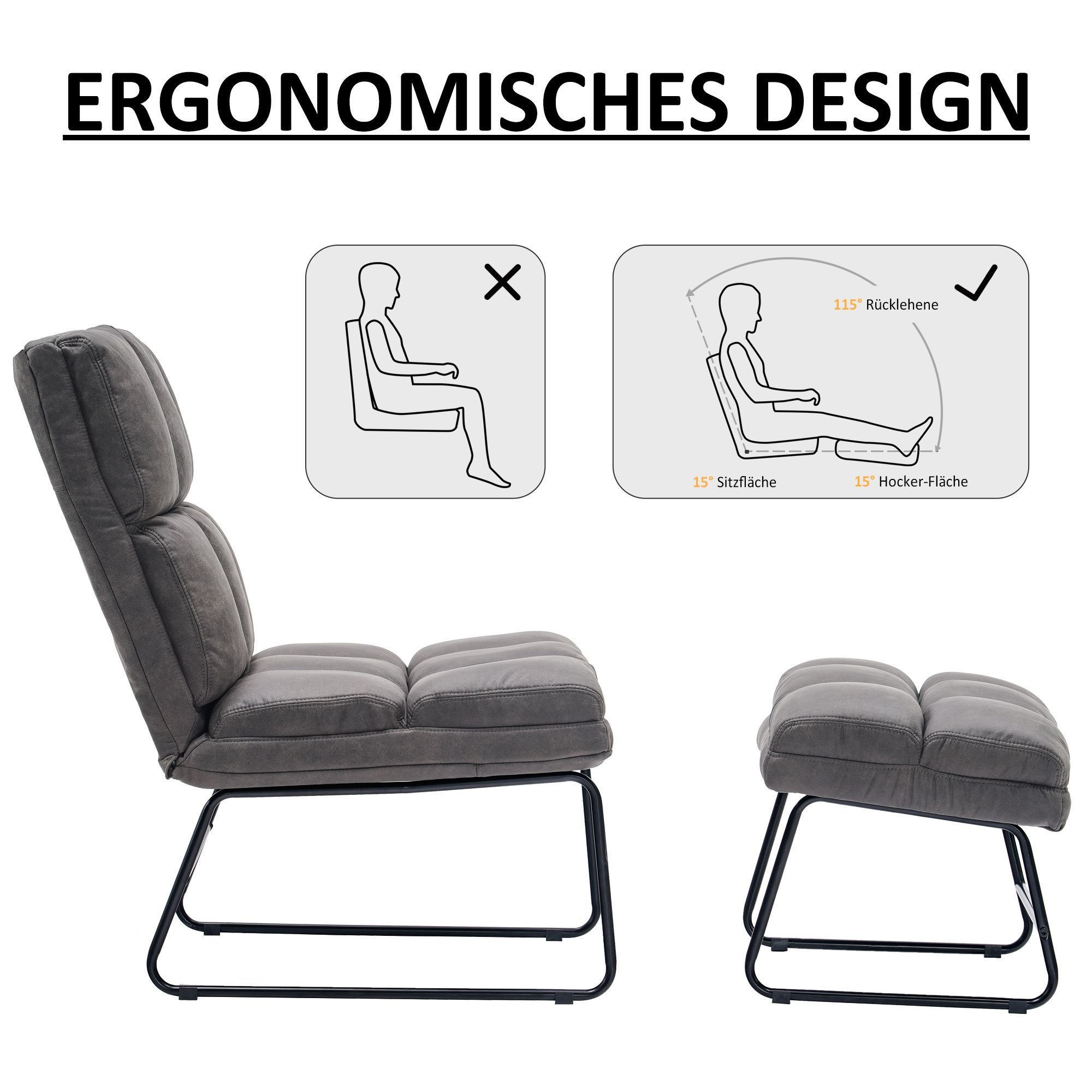 MCombo Relaxsessel Fernsehsessel Loungesessel Sessel Hocker Set Stoffbezug 0016
