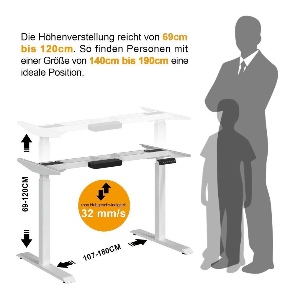 MCombo Tischgestell elektrisch höhenverstellbar Steh-Sitz-Tische 2 Motoren weiß