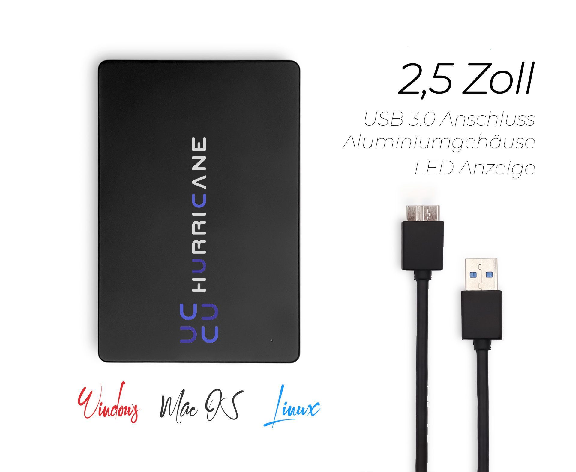 MD25U3 schwarz Hurricane 1TB 2.5 Zoll Externe tragbare Festplatte USB 3.0 External