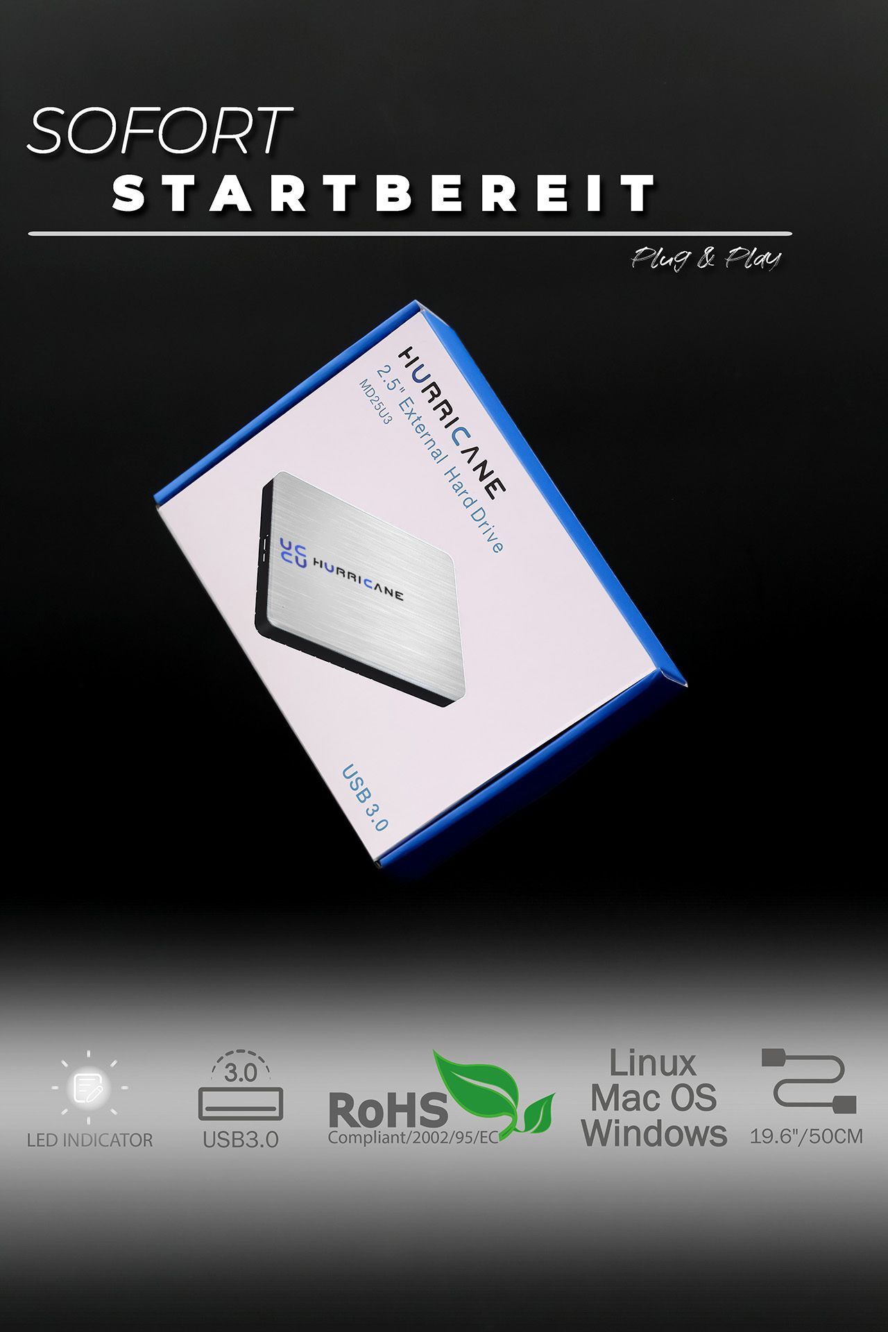 MD25U3 silver Hurricane 200GB 2.5 Zoll Externe tragbare Festplatte USB 3.0 External