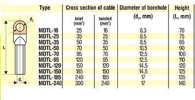 MDTL-95mm² Rohrkabelschuhe aus Kupfer-Aluminium XBS