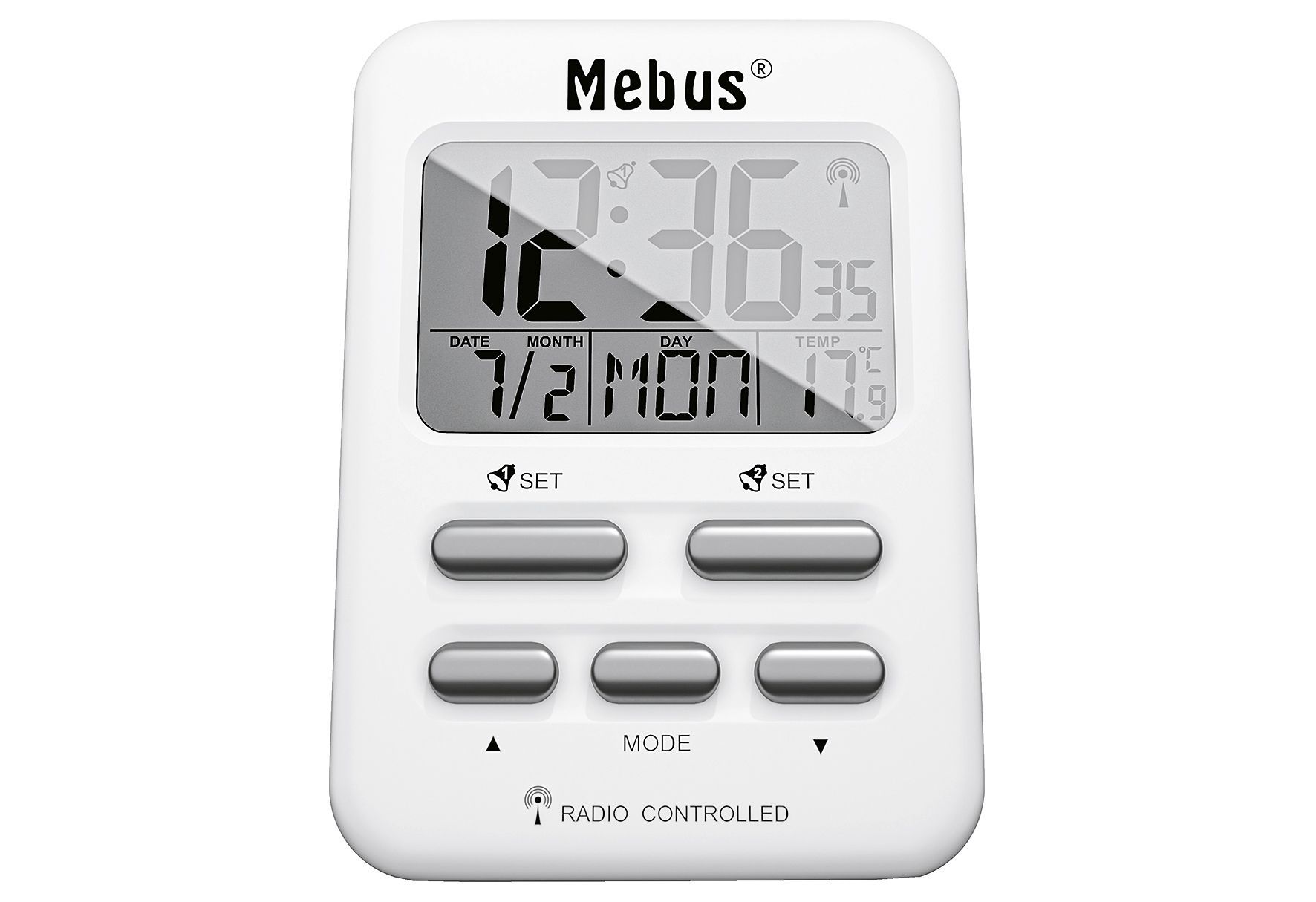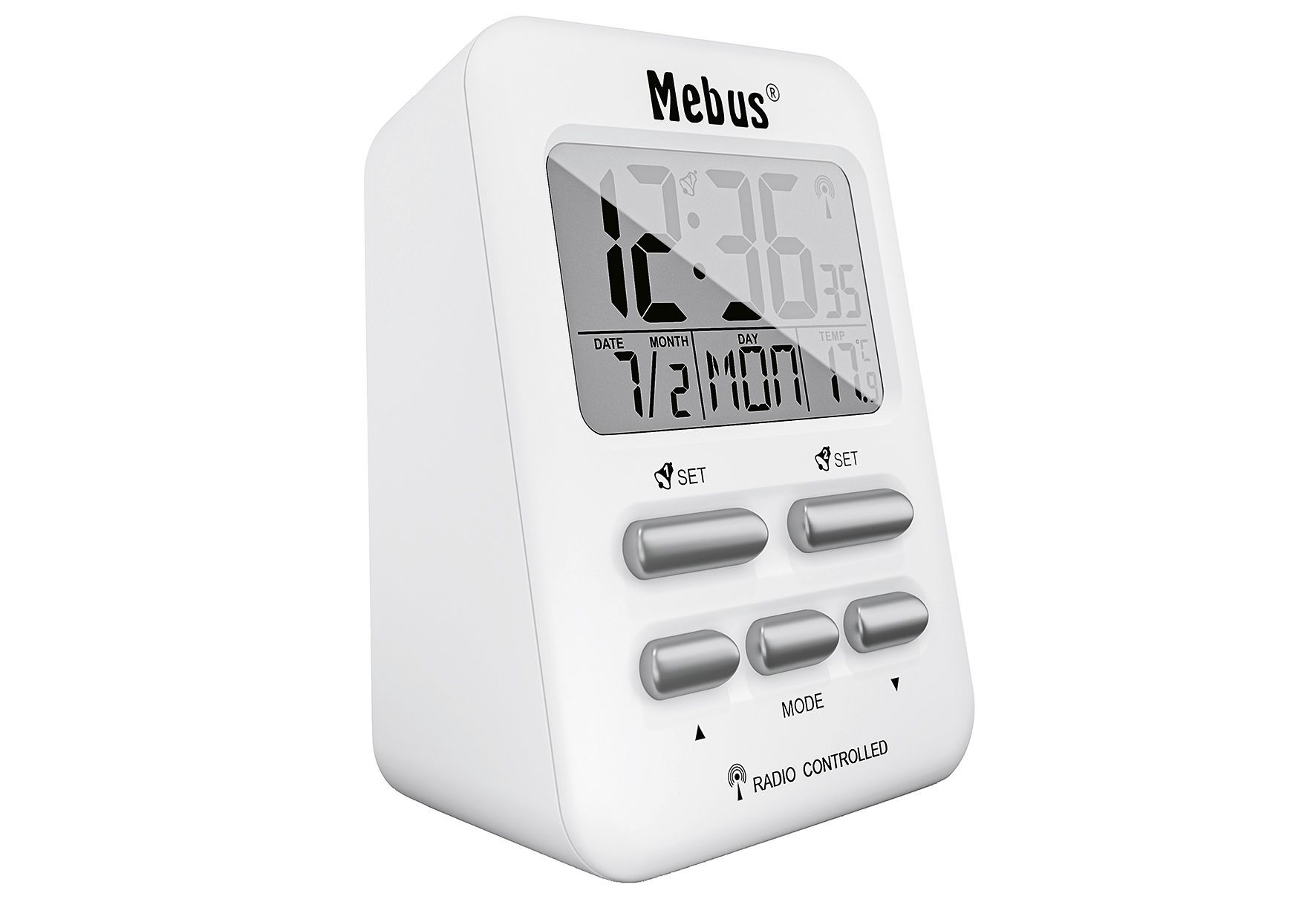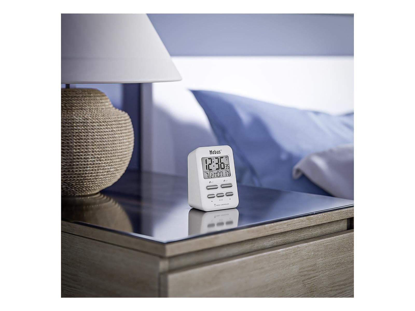 MEBUS Funkwecker 6,9x9,6x4,5cm digital weiß