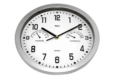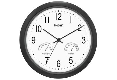 • MEBUS Quarz-Wanduhr analog mit Thermometer / Hygrometer ohne 1x AA Batterie Ø22,5c