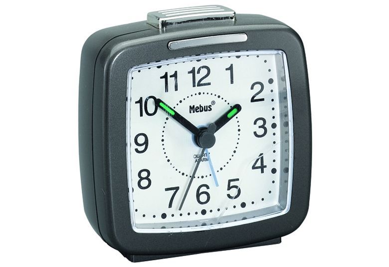 MEBUS Quarzwecker 26483 mit Beleuchtung 7x7cm anthrazit