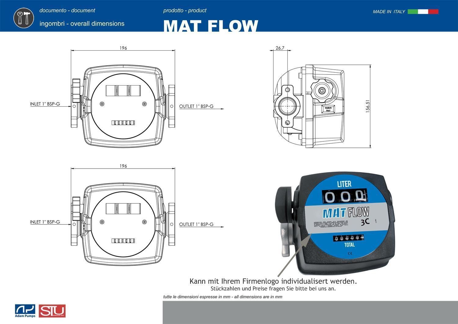 Mechanisches Zählwerk Messkammer für Diesel Modell R Flow 3 Ausgang unten