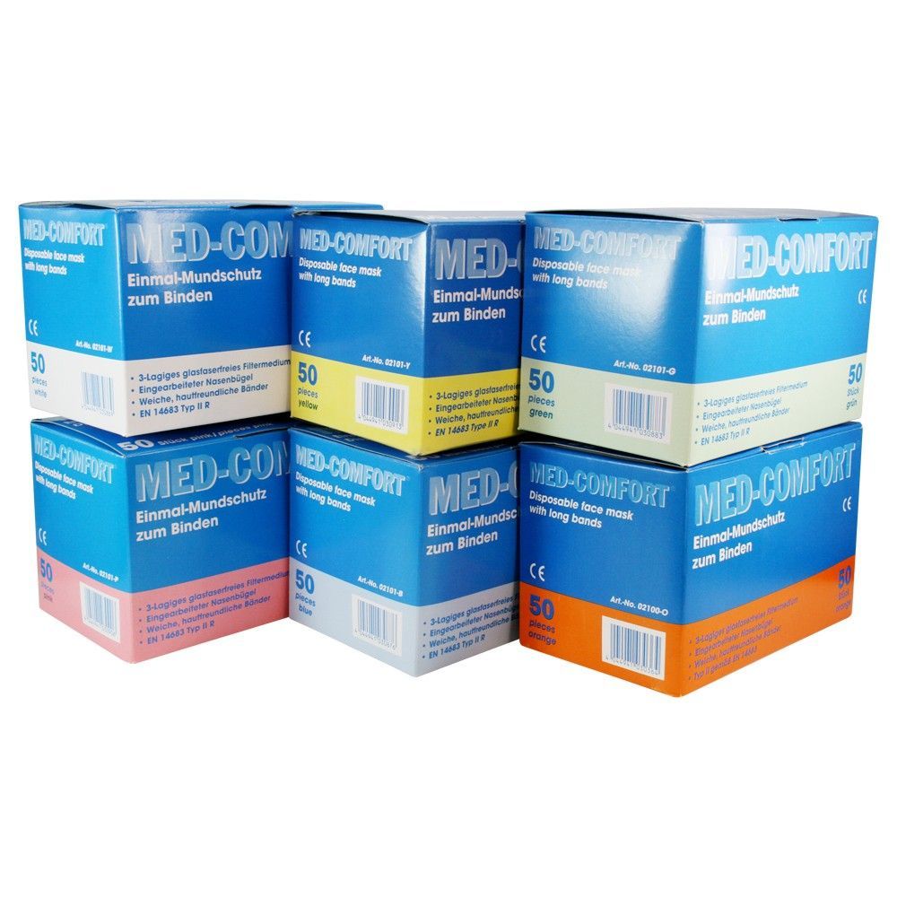 Ampri MED Comfort Mundschutz 3-lagig zum Binden 50 Stück verschiedene Farben
