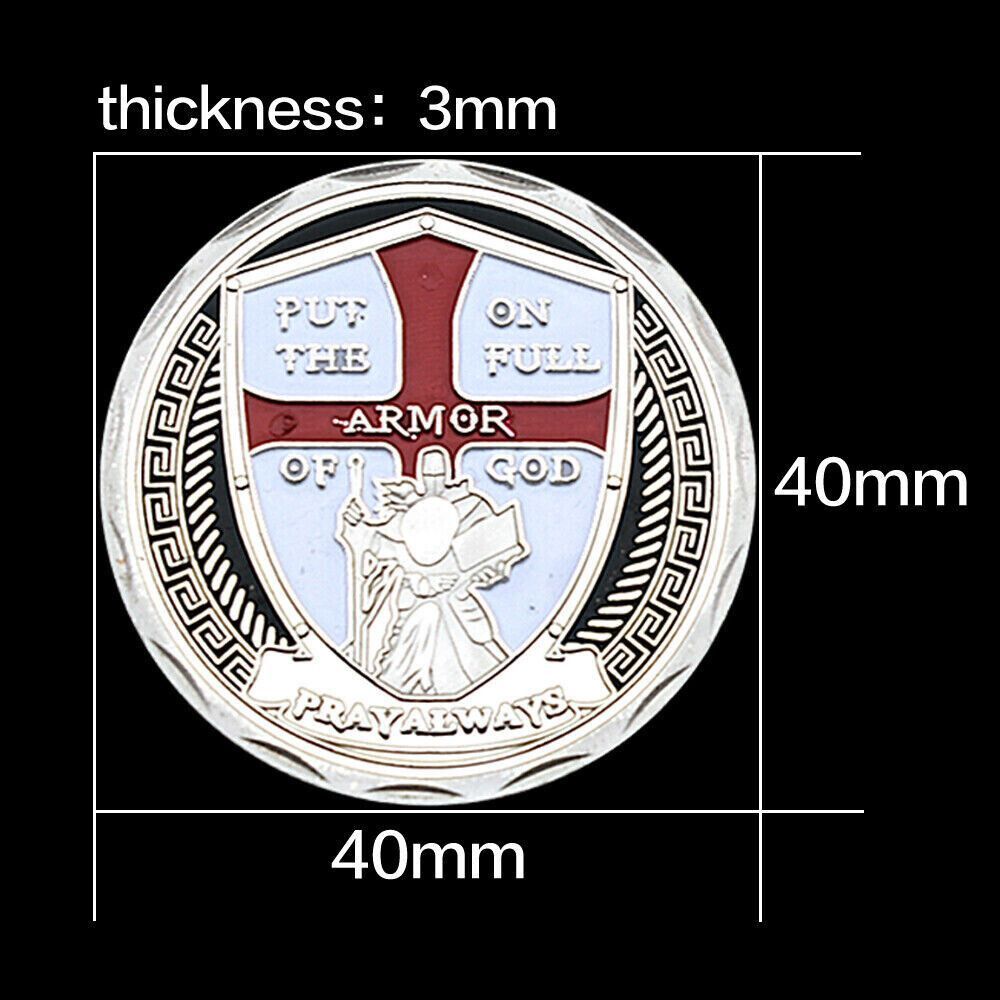 Schöne Medaille Armor Of God wie abgebildet Technische Information zum Artikel Material Silber Plated mit Farbe Schwarze Version (Andere Farbe findet ihr in meinem Shop Größe: 40mm Gewicht: ca. 24,6 Gramm Erhaltung: Polierte Platte (Optische Mängel möglich) Verpackung: Kapsel Ideal für Sammler oder