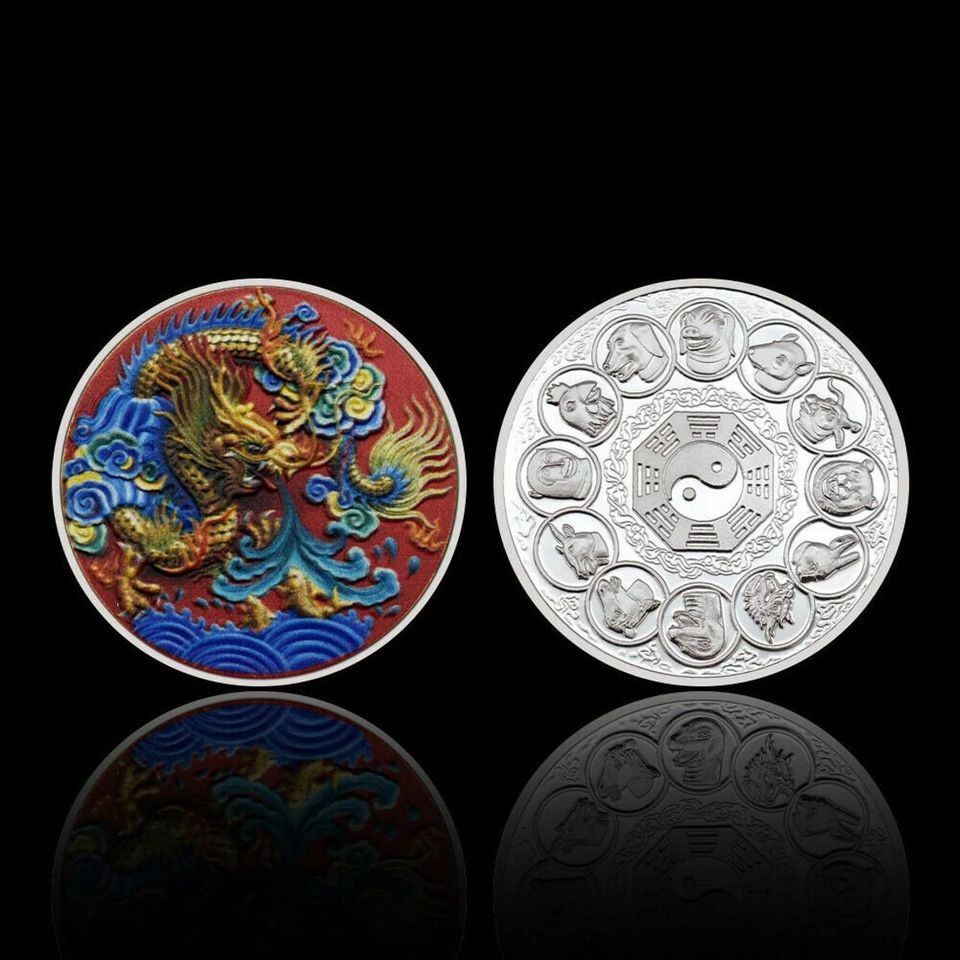 1 Stück schöne Medaille Chinesischer Drache mit 12 Sternzeichen wie abgebildet Diese Variante ist kaum im Handel erhältlich Technische Information zum Artikel Material Silber Plated Größe: 40mm Erhaltung: Polierte Platte (Optische Mängel möglich) Verpackung: Kapsel Ideal für Sammler oder auch einfac