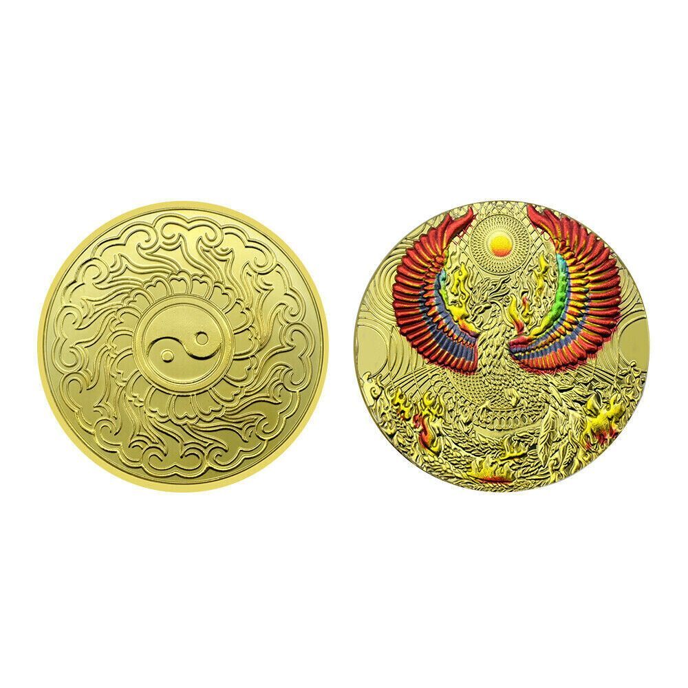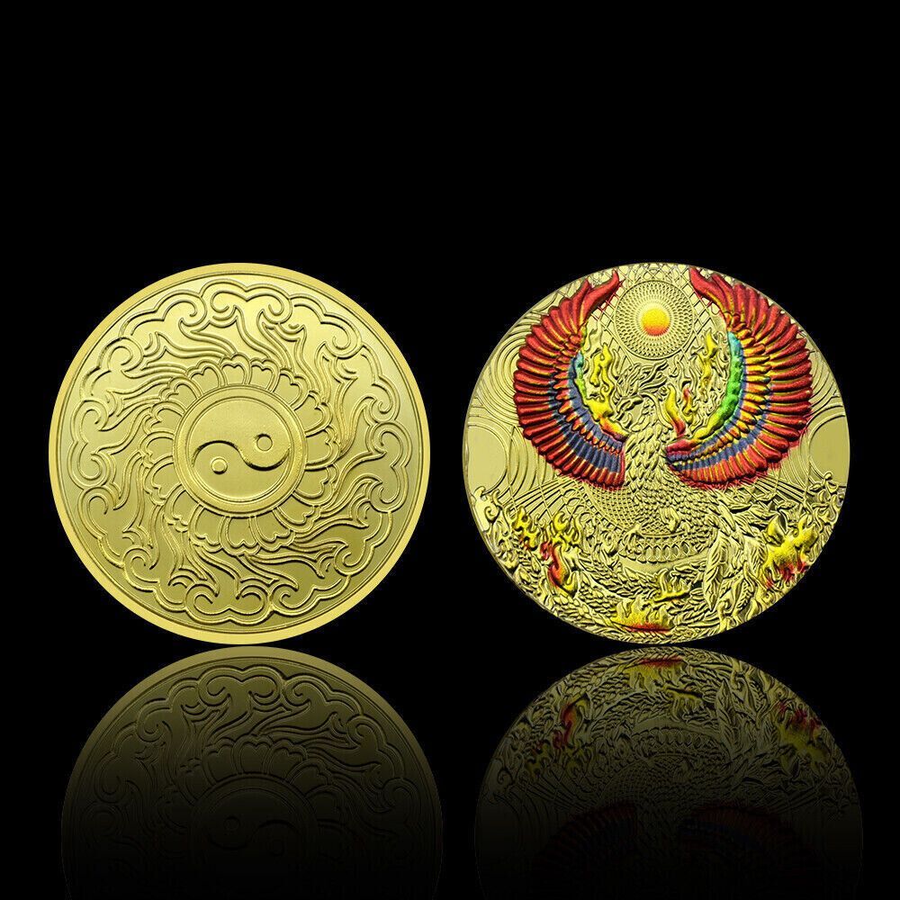 Schöne Medaille Glücksbringer Goldener Phönix mit Yin und Yang Rückseite vergoldet wie abgebildet Diese Variante ist kaum im Handel erhältlich Technische Information zum Artikel Material vergoldet Größe: 40mm Erhaltung: Polierte Platte (Optische Mängel möglich) Verpackung: Kapsel Ideal für Sammler o