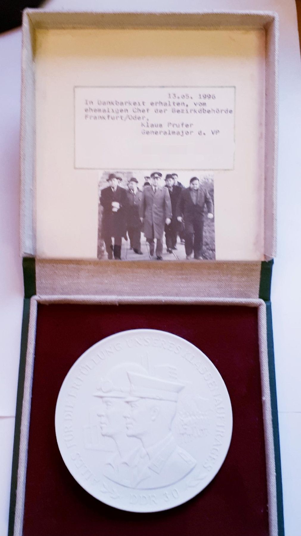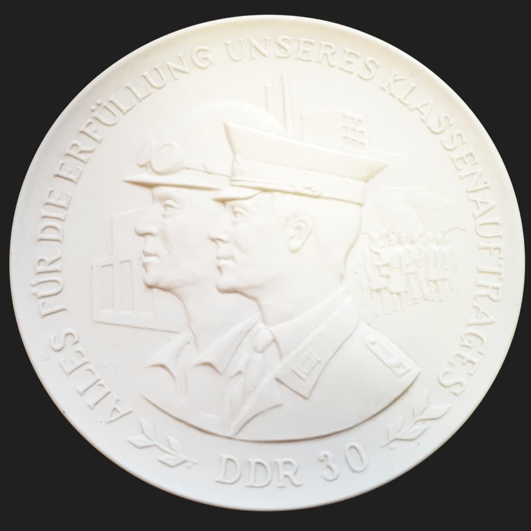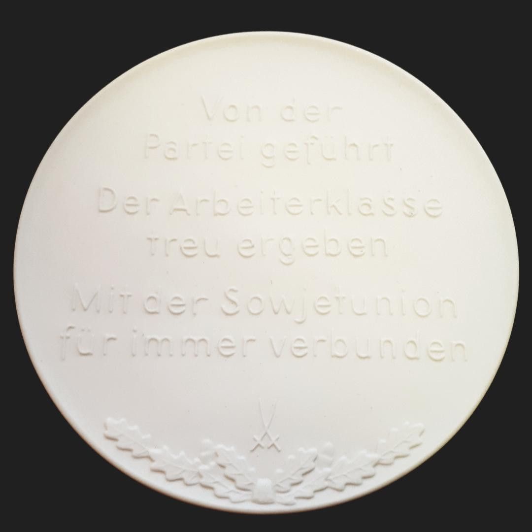 Medaille Meissen Porzellan DDR Erfüllung des Klassenauftrages K.M. * Durchmesser: ca. 10 cm Zustand: gut - gebraucht mit kleinen Gebrauchsspuren