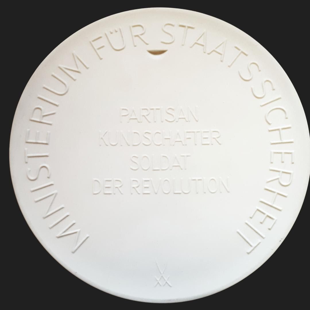 Medaille Meissen Porzellan MfS Fritz Schmenkel K.M. * Durchmesser: ca. 16 cm Zustand: gut - gebraucht mit kleinen Gebrauchsspuren