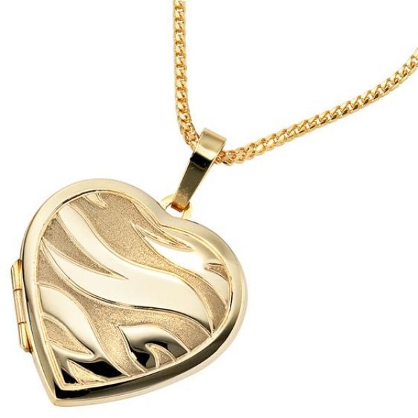 JOBO Medaillon Herz 585 Gelbgold mattiert Anhänger zum Öffnen