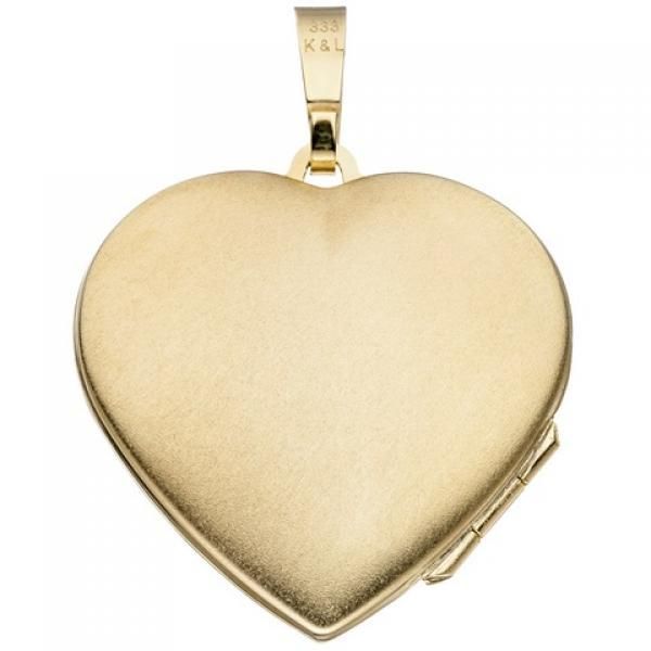 • Medaillon Herz 333 Gold Gelbgold eismatt Anhänger zum Öffnen