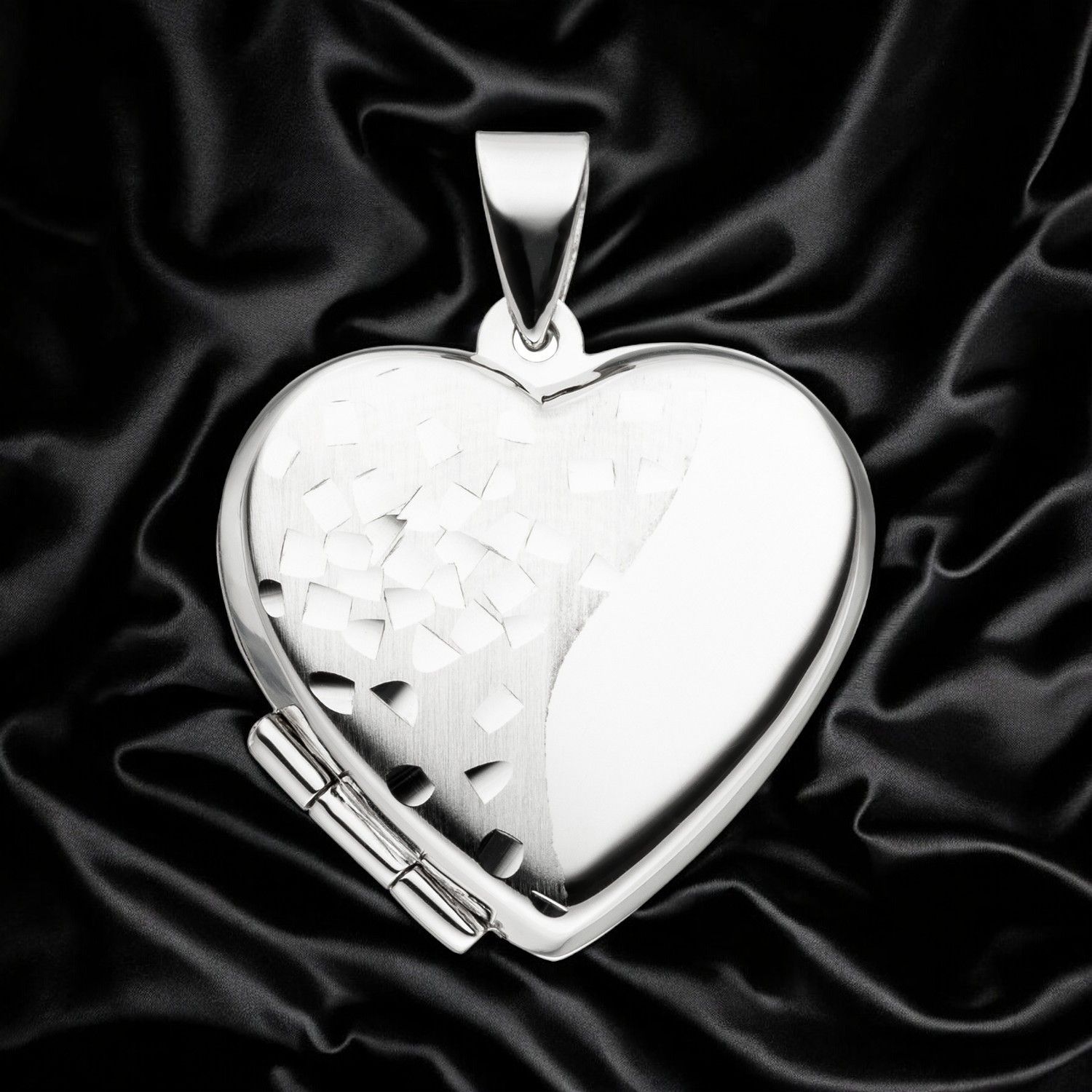 JOBO Medaillon Herz für 2 Fotos 925 Silber teil matt Herzmedaillon zum Öffnen