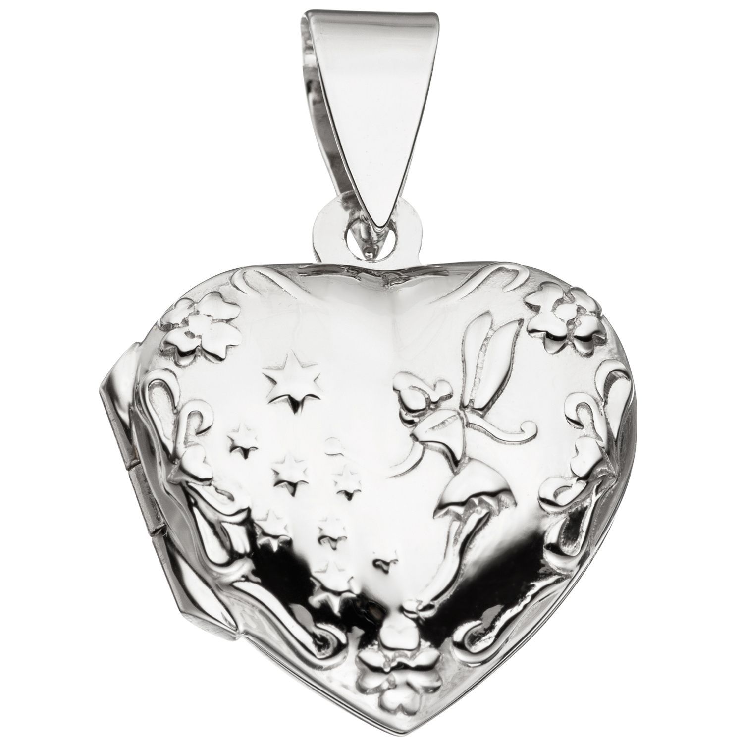 JOBO Medaillon Herz für 2 Fotos 925 Sterling Silber Anhänger zum Öffnen