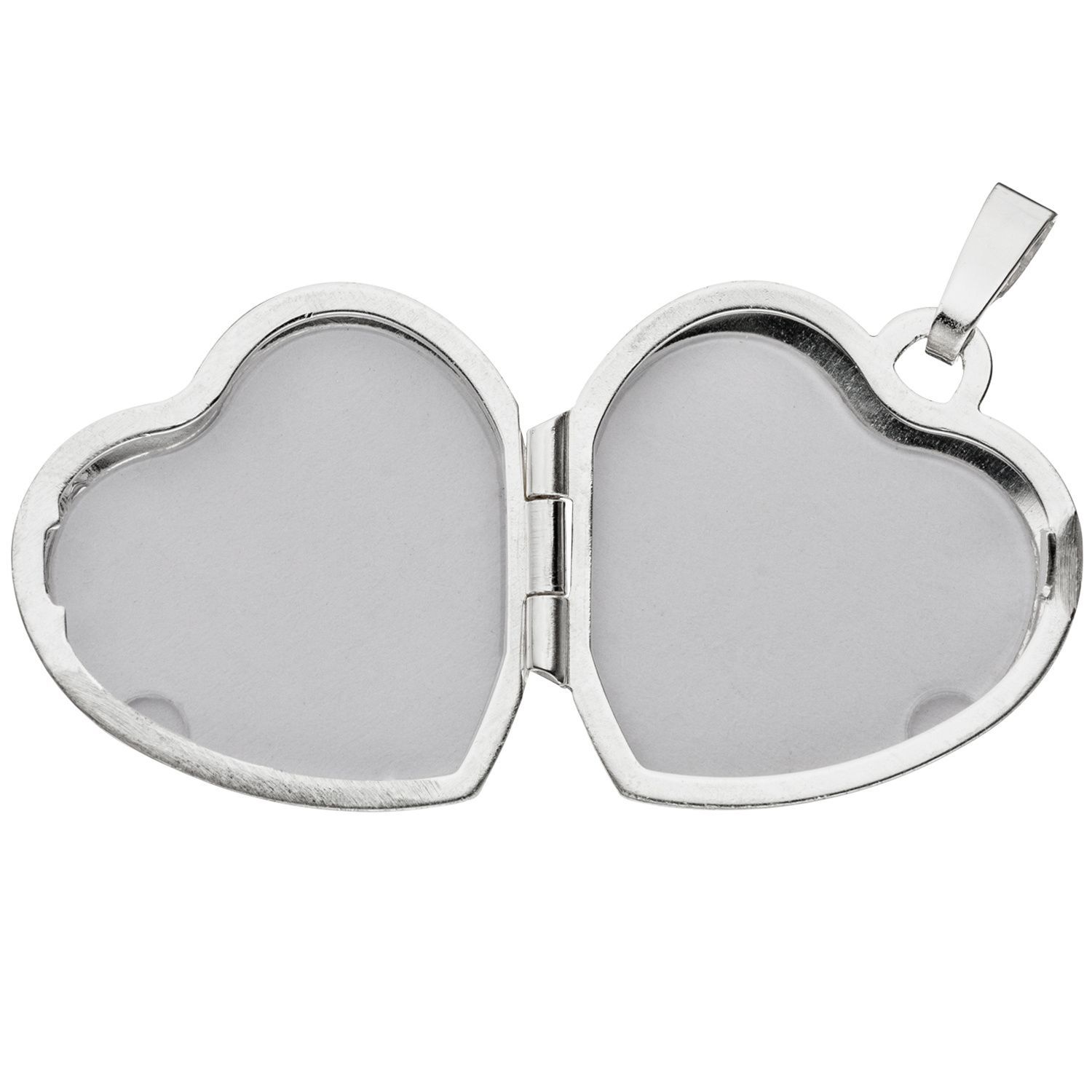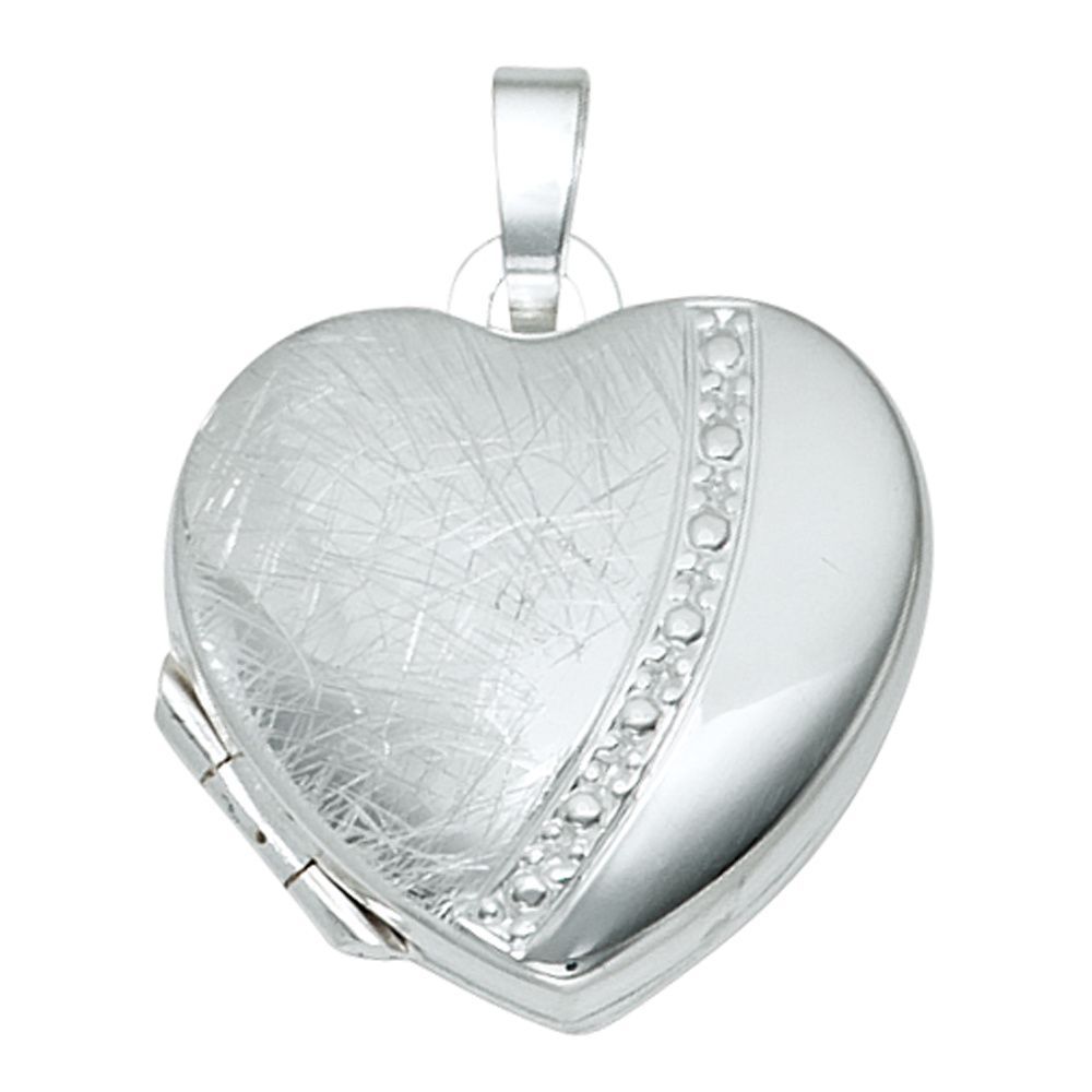 JOBO Medaillon Herz für 2 Fotos Herz 925 Sterling Silber eismatt Anhänger zum Öffnen