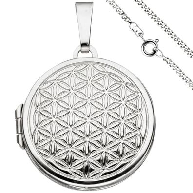 • Medaillon Blume des Lebens rund Anhänger zum Öffnen 925 Silber mit Kette 50 cm