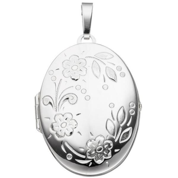 JOBO Medaillon oval Blumen für 2 Fotos 925 Sterling Silber zum Öffnen