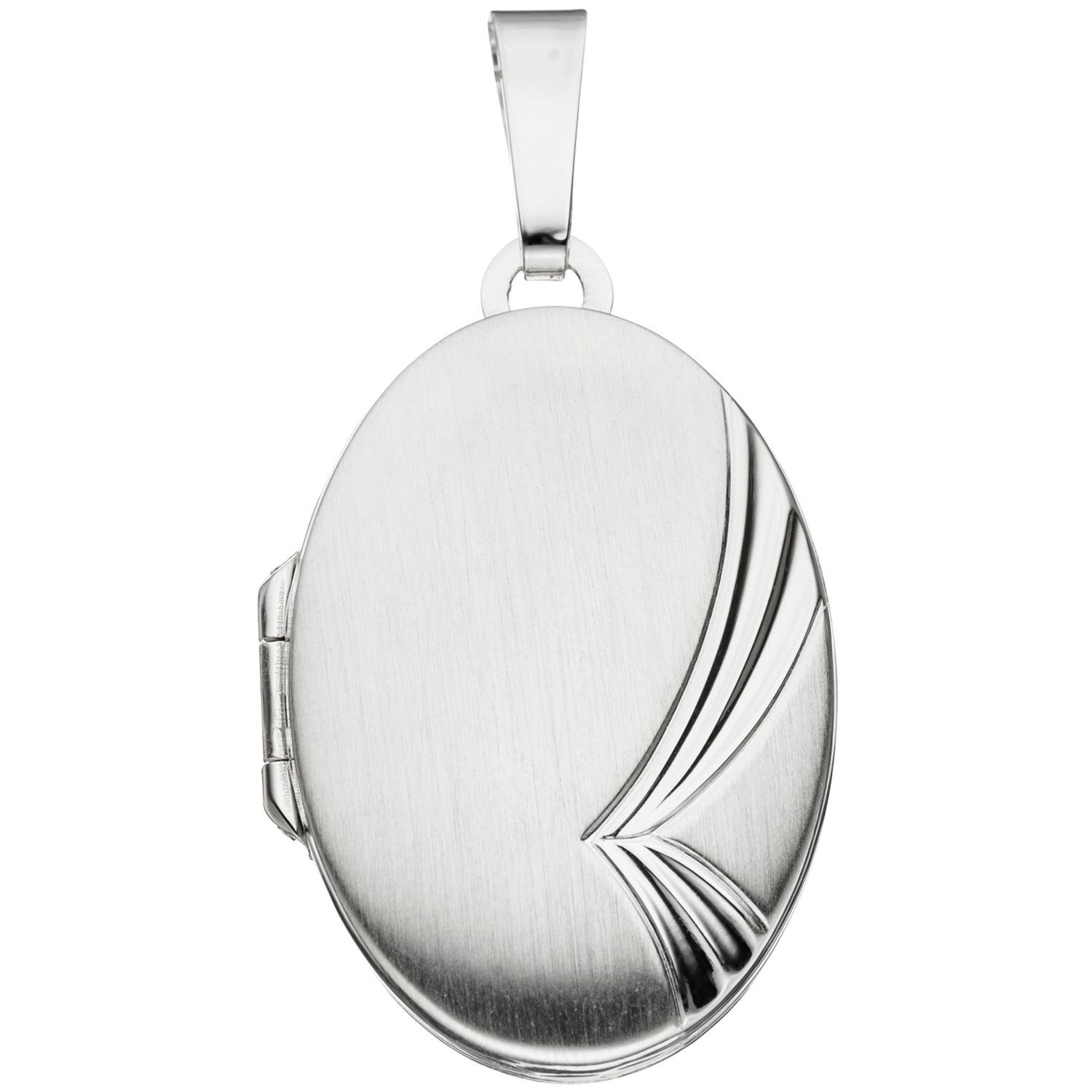 Medaillon oval für 2 Fotos 925 Sterling Silber mattiert Anhänger zum Öffnen