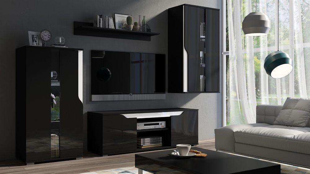 Mediawand Wohnwand 4 tlg DALLAS Schwarz Hochglanz / Weiss