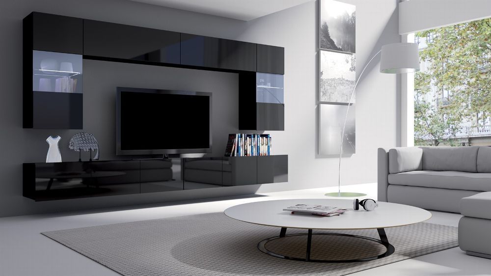 Mediawand Wohnwand 6 tlg - LABRI 1 - Schwarz Hochglanz