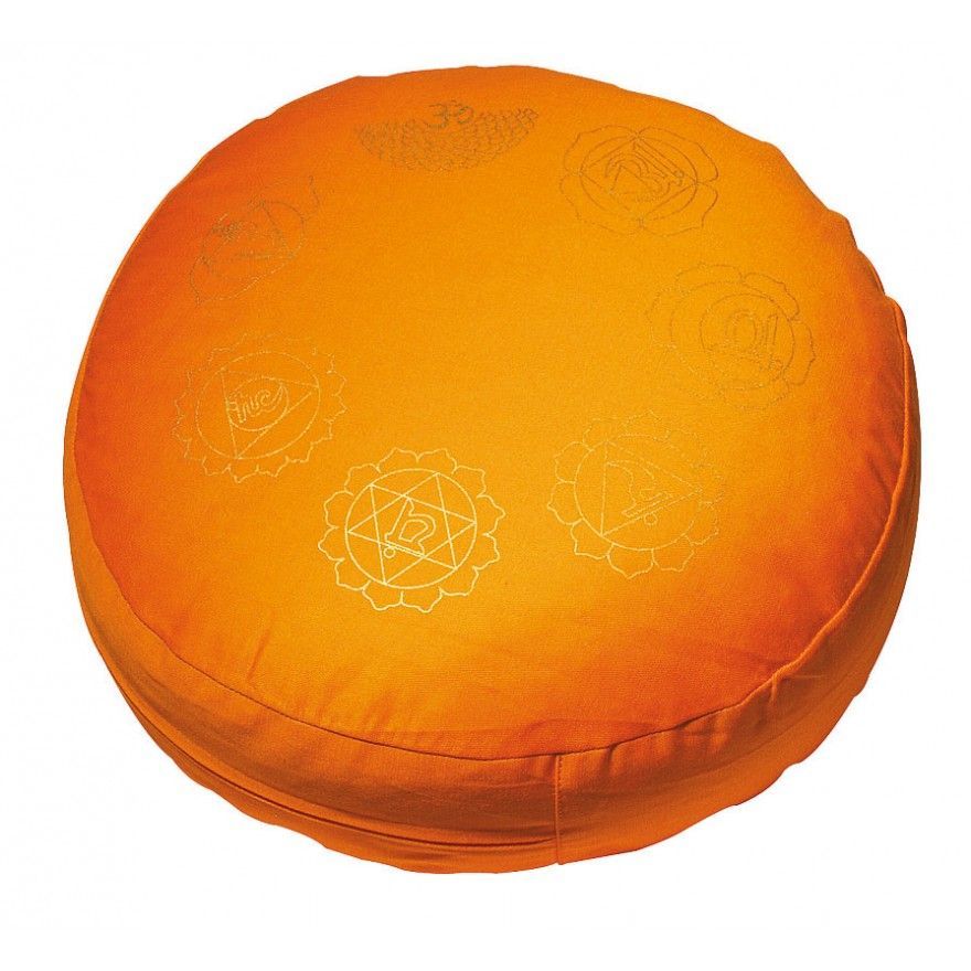 Saraswati Meditationskissen 7 CHAKRA Dinkelspelz orange D: 35 cm Yogakissen Sitzkissen