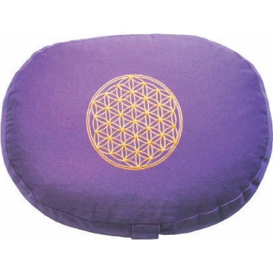 Saraswati Meditationskissen BLUME DES LEBENS lila Dinkelspelz 30 x 25 cm Yoga Sitzkissen