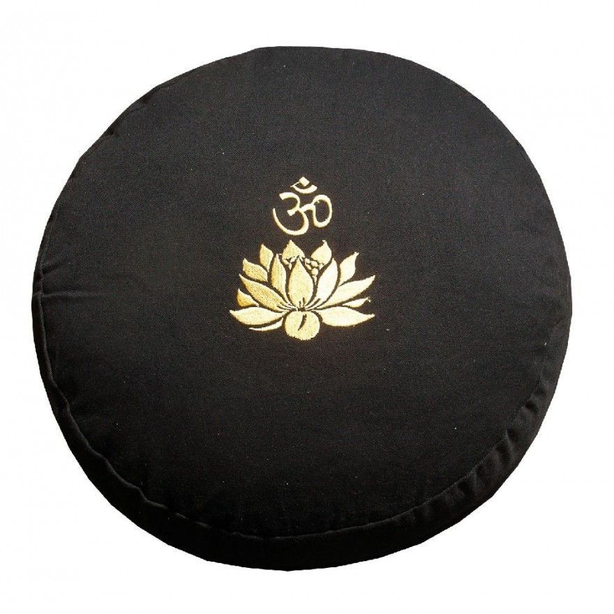 Saraswati Meditationskissen OM LOTUS schwarz Dinkelspelz Ø 35 cm Yogakissen Sitzkissen