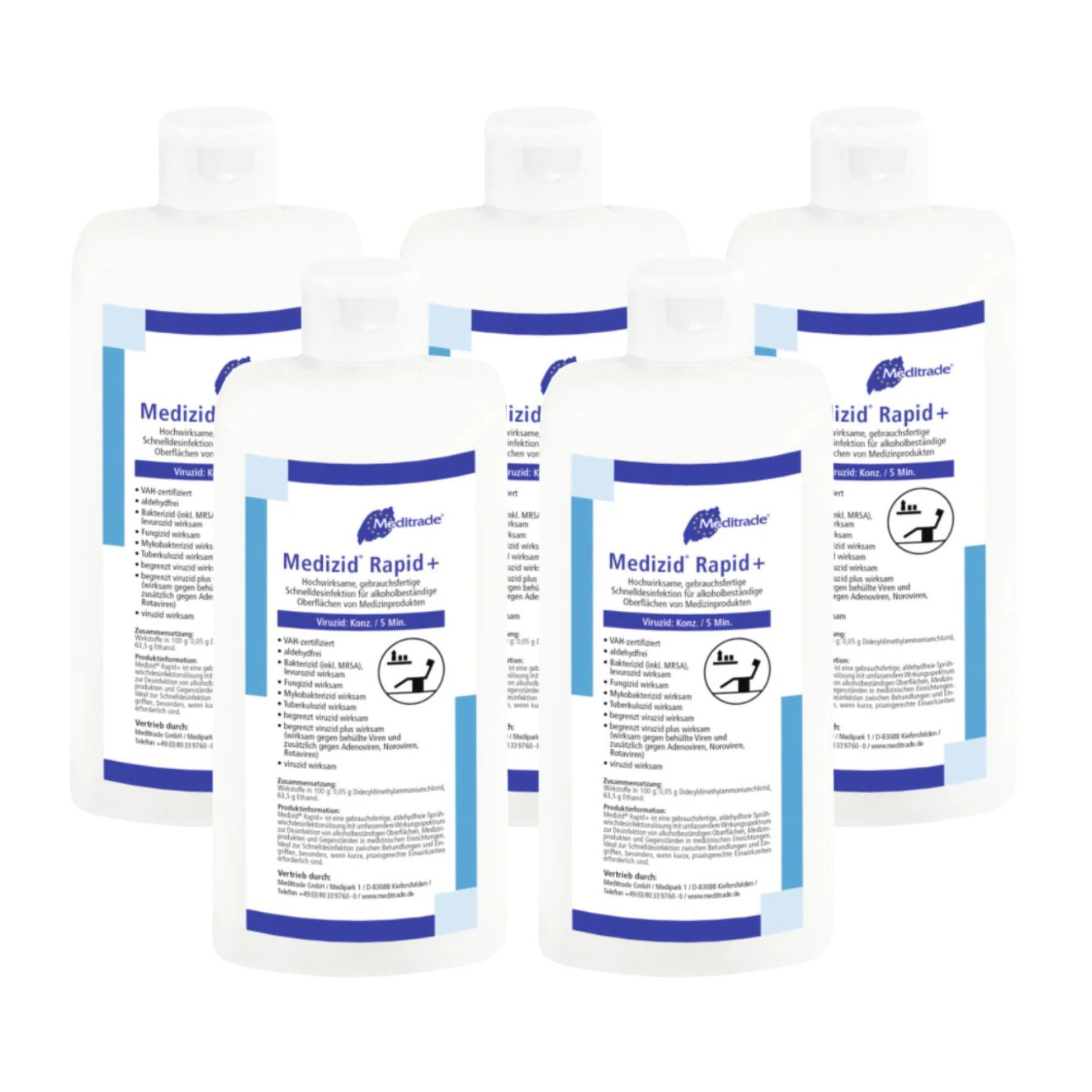Meditrade Medizid Rapid+ Flächendesinfektion 5x 500ml Sprühflasche