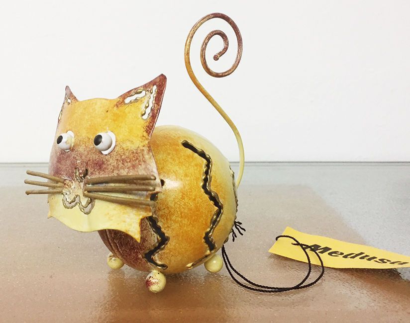 Medusa KATZE gelb weinrot XS H8cm Metall Figur handbemalt bunt Kater Kätzchen