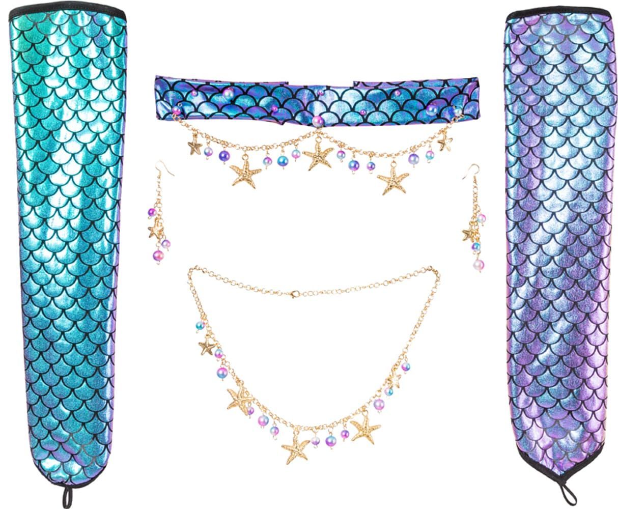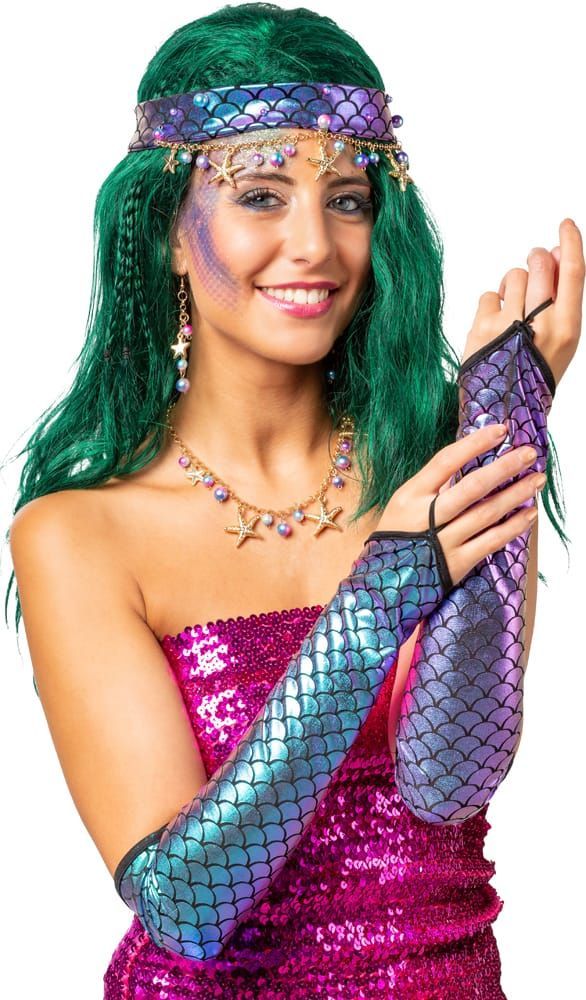 Meerjungfrau 4-teilig Handschuhe Ohrringe Halskette Kopfband