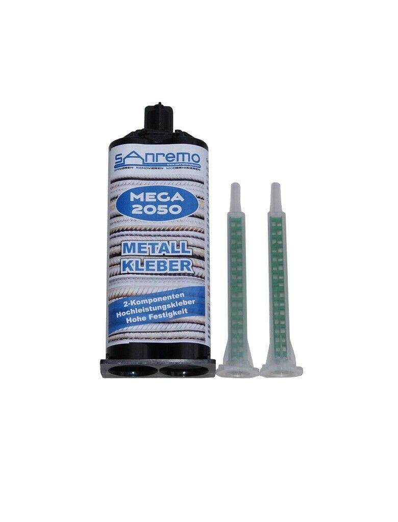 MEGA 2050 Metallkleber - Schwarz - 50ml Kartusche + 2 Quadro Mischer