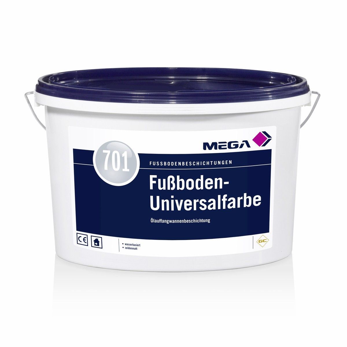 MEGA 701 FUSSBODEN UNIVERSALFARBE 12,5 LITER SAND Details für 701 Fussboden Universalfarbe (sand - 12,5 Ltr.): Seidenmatte, farbige Versiegelung als Fußbodenbeschichtung auf mineralischen Untergründen im Innenbereich mit normaler Gehbelastung, z. B. Keller, Lagerräume, Speicher, Dachböden und als öl