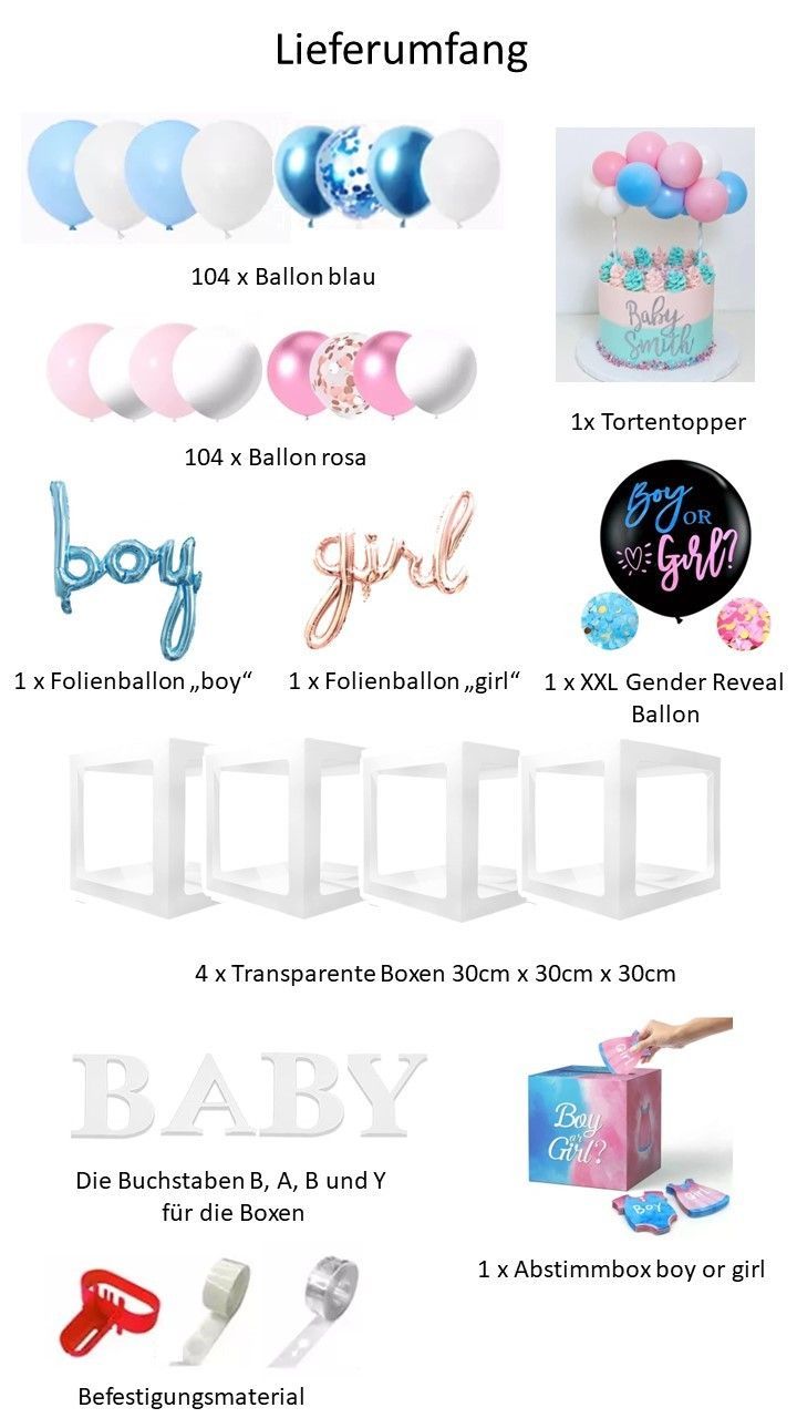 MEGA Bundle Gender Reveal Party Girlande Babyparty Party Babybox girl boy rosa blau