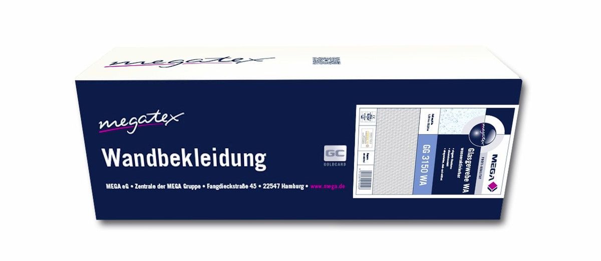 MEGA Glasgewebe GG 3150 WA 50,00 m x 1,00 m Details für Glasgewebe GG 3150 WA 50,00 m x 1,00 m: - Wasseraktivierbarer Kleber rückseitig aufgebracht - Pigmentierte Vorbeschichtung MEGA Glasgewebe WA ist ein modernes, dekoratives und strapazierfähiges Gewebe für den Innenbereich. Die Optiken reichen v