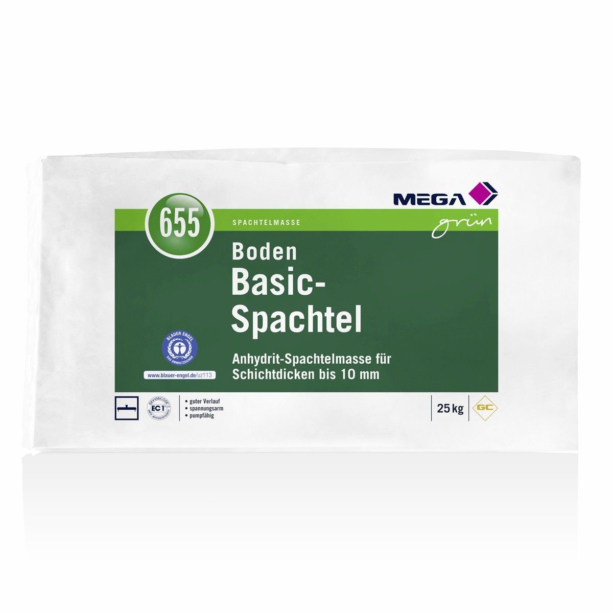 MEGA grün 655 Boden Basic-Spachtel 25 kg beige Details für 655 Boden Basic-Spachtel 25 kg beige: Sehr emissionsarmer, selbstverlaufender Anhydrit Bodenausgleich für die nachfolgende Verlegung von textilen, elastischen Belägen im Innenbereich. Nicht geeignet für Beschichtungen. Die Beanspruchung mit