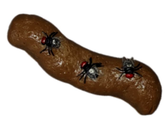 glibberige Kackwurst mit 3 künstlichen Fliegen
