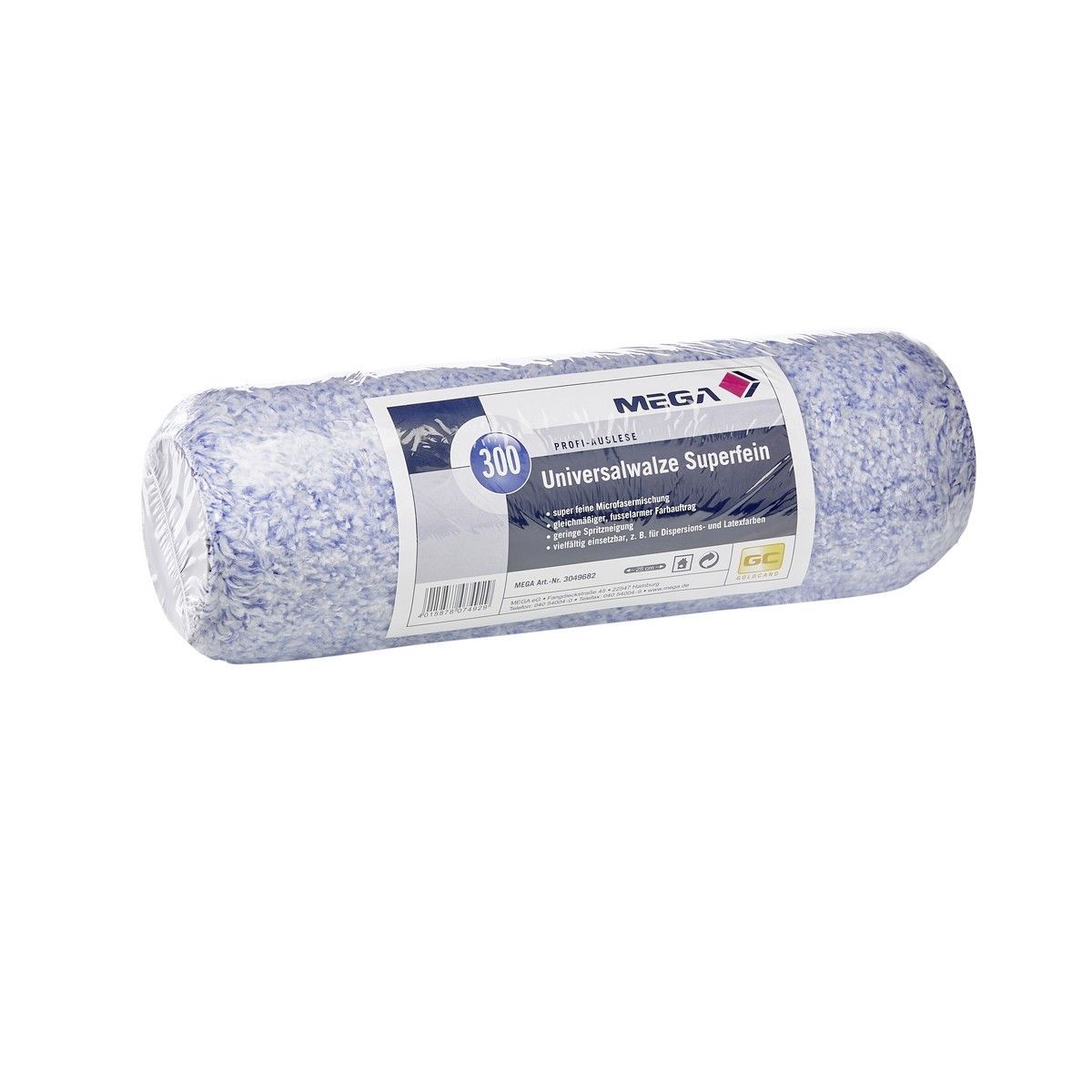 MEGA UNIVERSALWALZE SUPERFEIN 18 CM Details für Universalwalze superfein 18 cm: Superfeine Mikrofasermischung. Gleichmäßiger, fusselarmer Farbauftrag. Geringe Spritzneigung und vielfältig einsetzbar, z. B. für Dispersions- und Latexfarbe. Breite: 18 cm