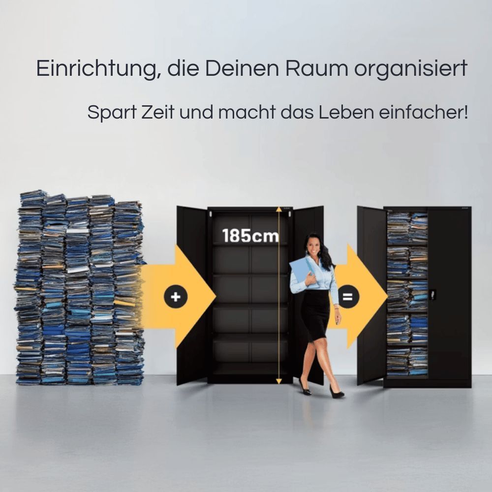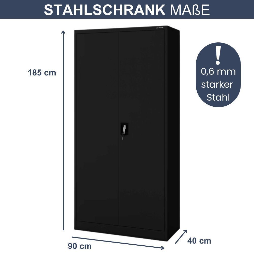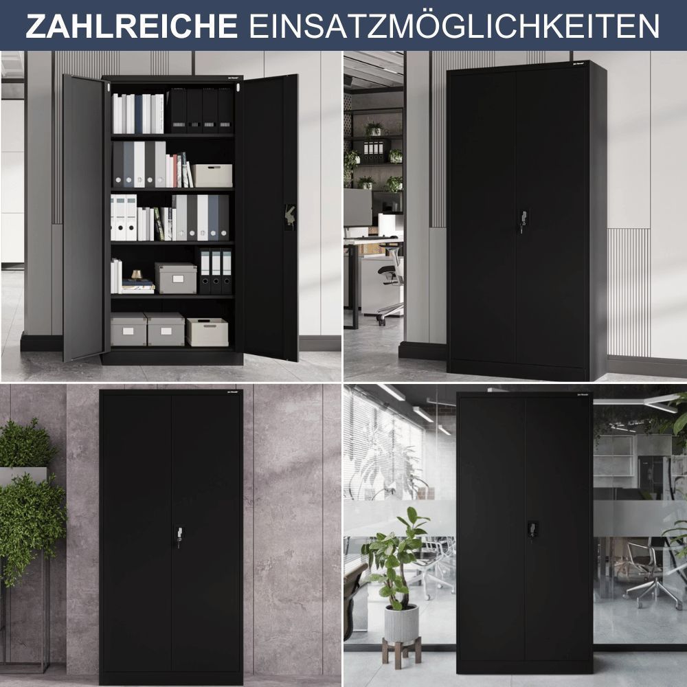 MegaDeal 4x Aktenschrank abschließbar KADO 185x90x40cm Schwarz 5 Ebenen verstellbar