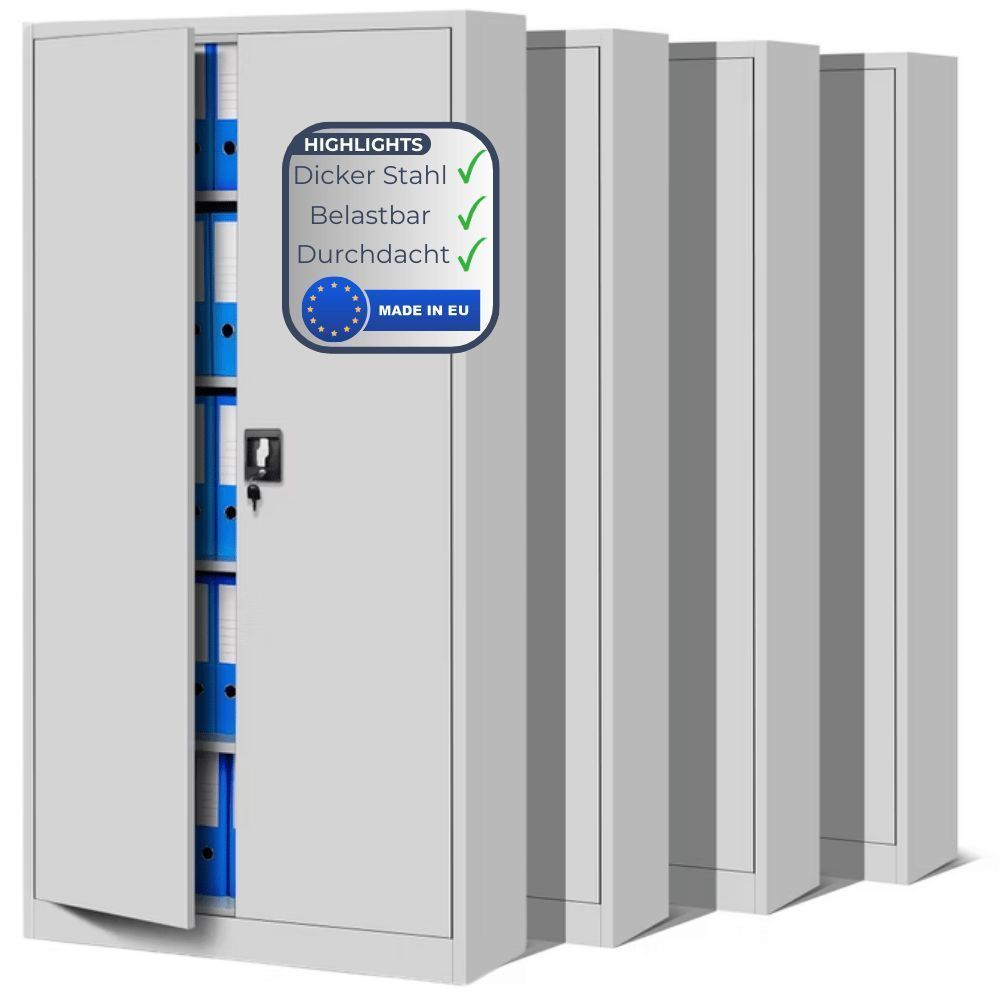 MegaDeal 4x Aktenschrank abschließbar KADO 195x90x40cm Grau 5 Ebenen verstellbar