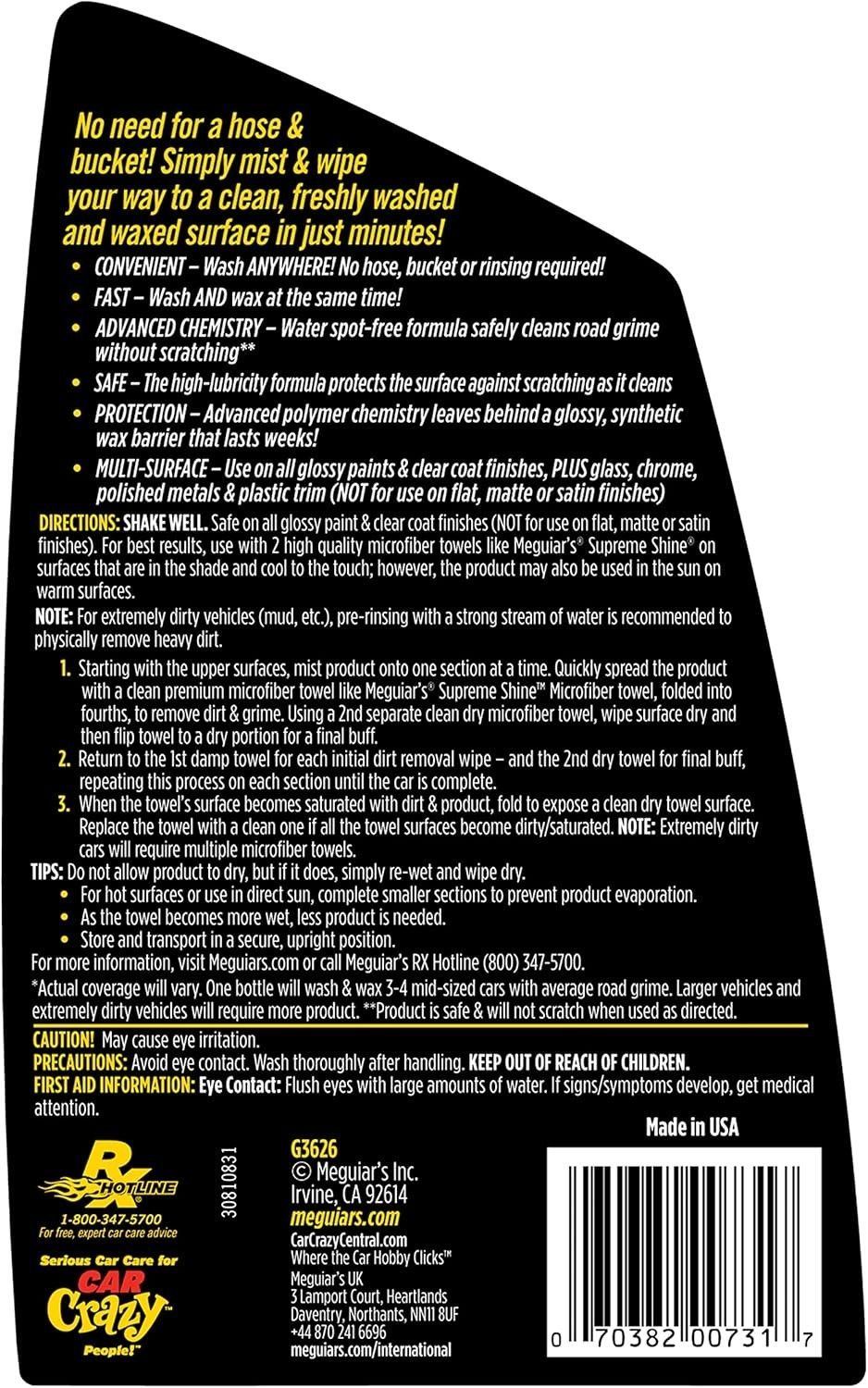 Meguiar´s G3626 Ultimate Waterless Wash and Wax Trockenwäsche Auto Pflege 768ml