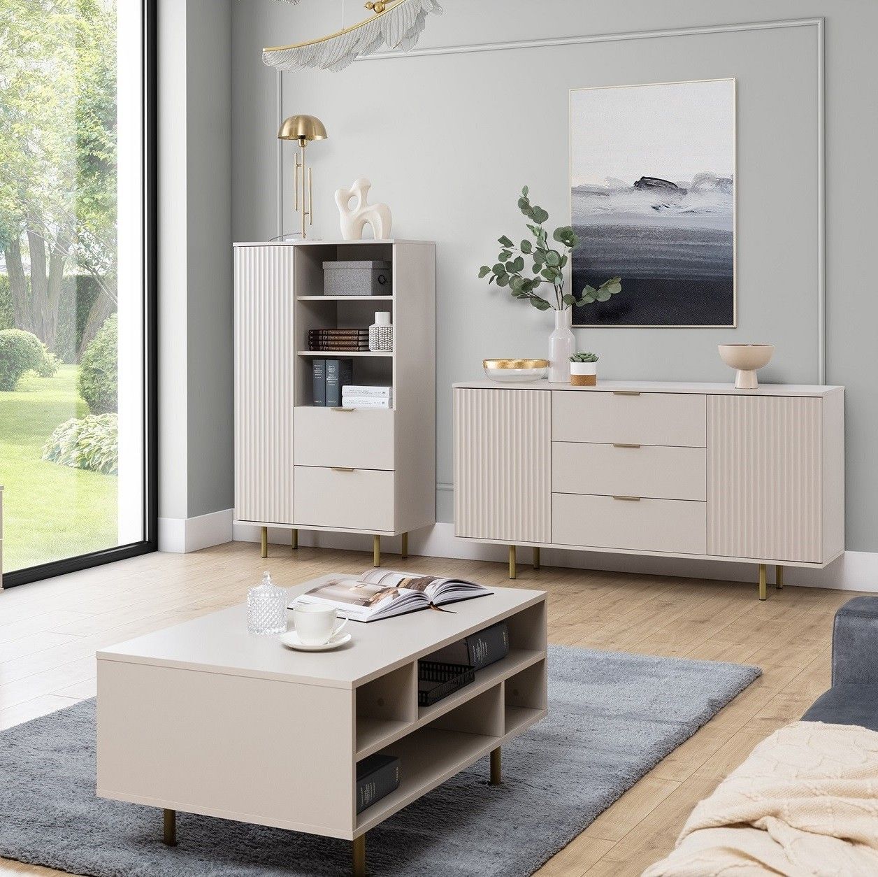 Mehrzweckschrank-Set NUBIA 07, Wohnzimmer-Set Kommode Couchtisch Regal