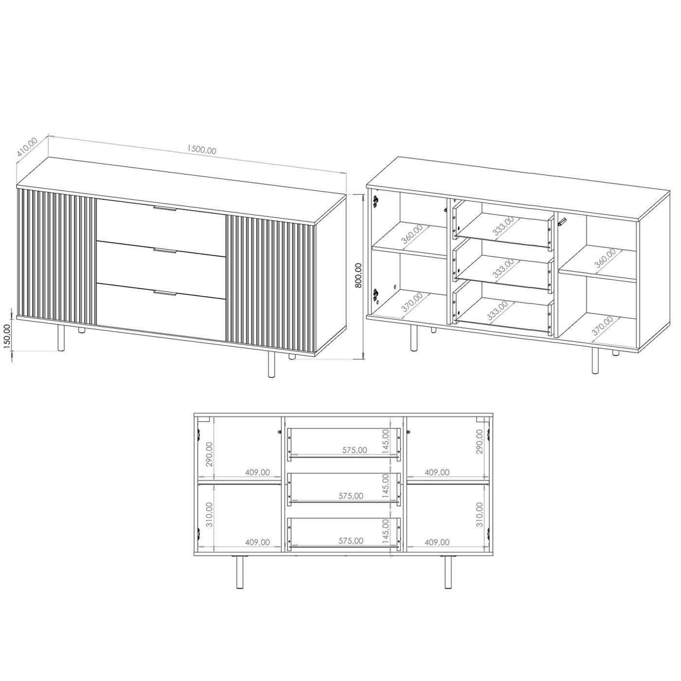 • Wohnzimmer-Set Daros - Couchtisch, TV-Schrank, Kommode 150 cm & 100 cm - Anthrazit