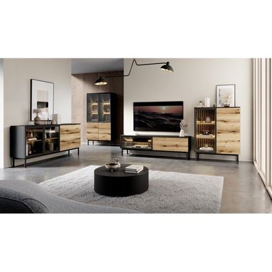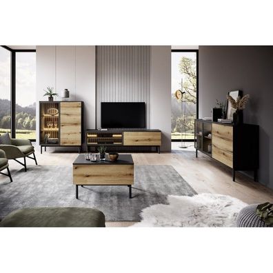 • Madi Wohnzimmermöbel-Set mit Vitrine artisan + anthrazit
