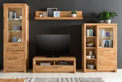• Wohnkombination Wohnwand Glasvitrine TV-Schrank Kernbuche geölt #3416