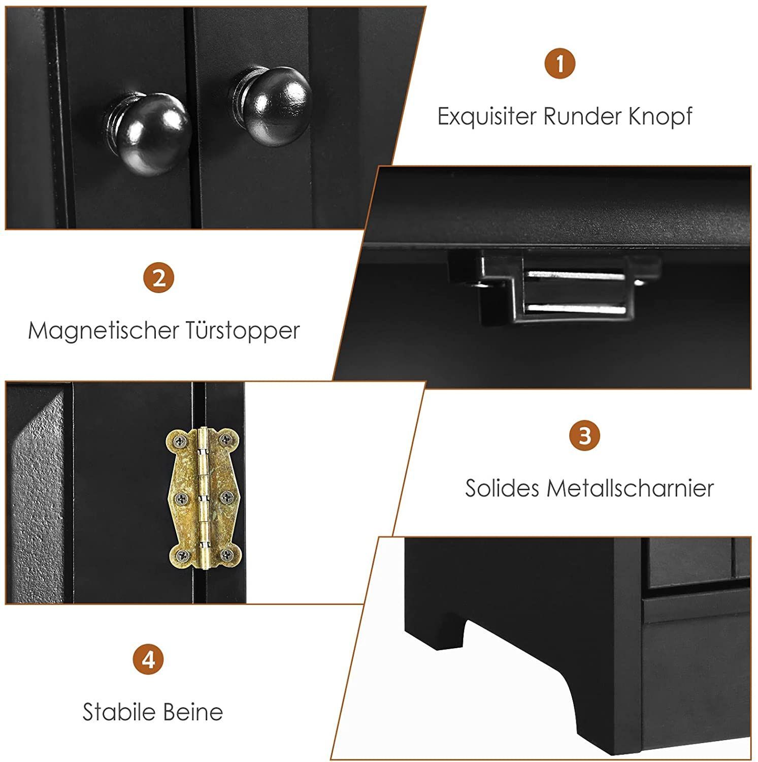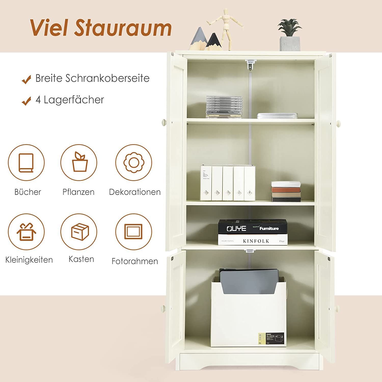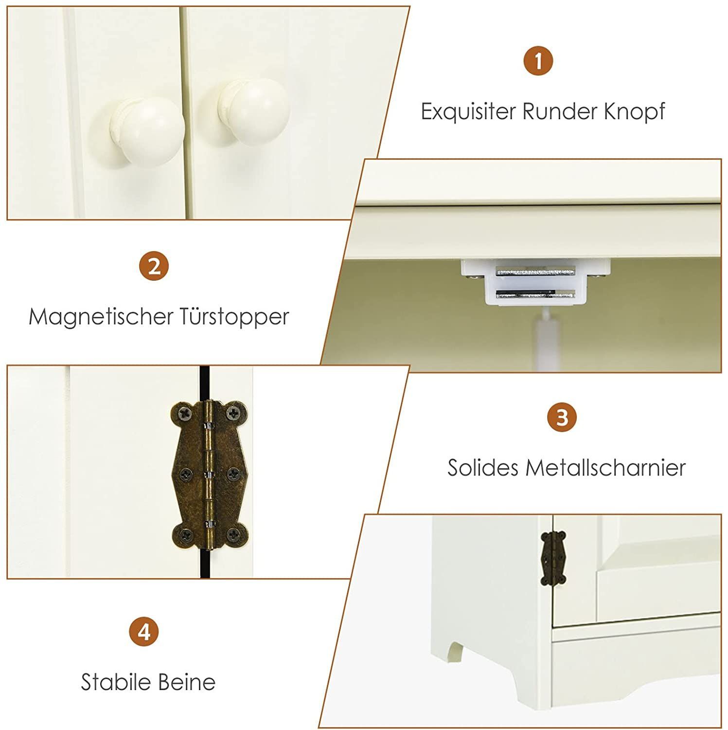 Mehrzweckschrank Vintage Flurschrank mit verstellbarem Regal Badschrank Wäscheschrank