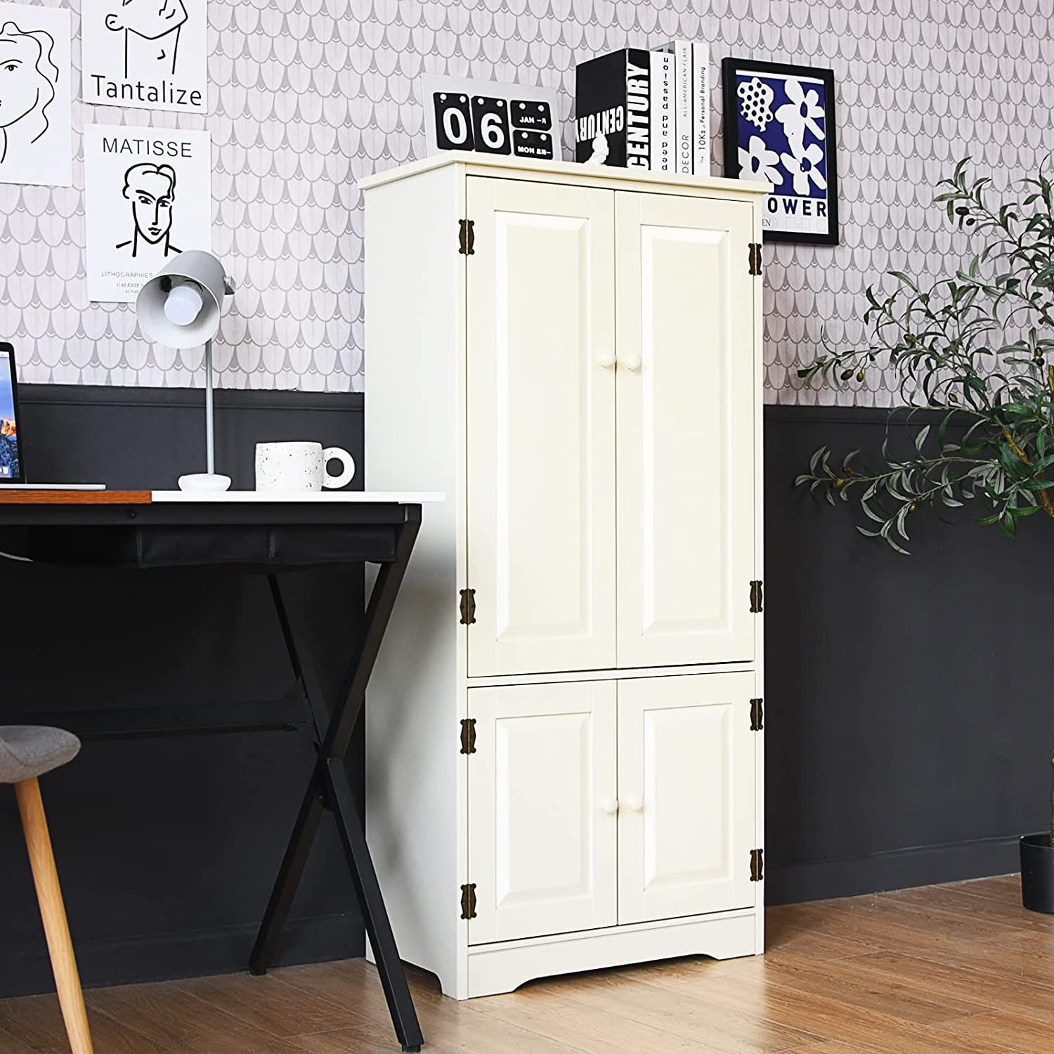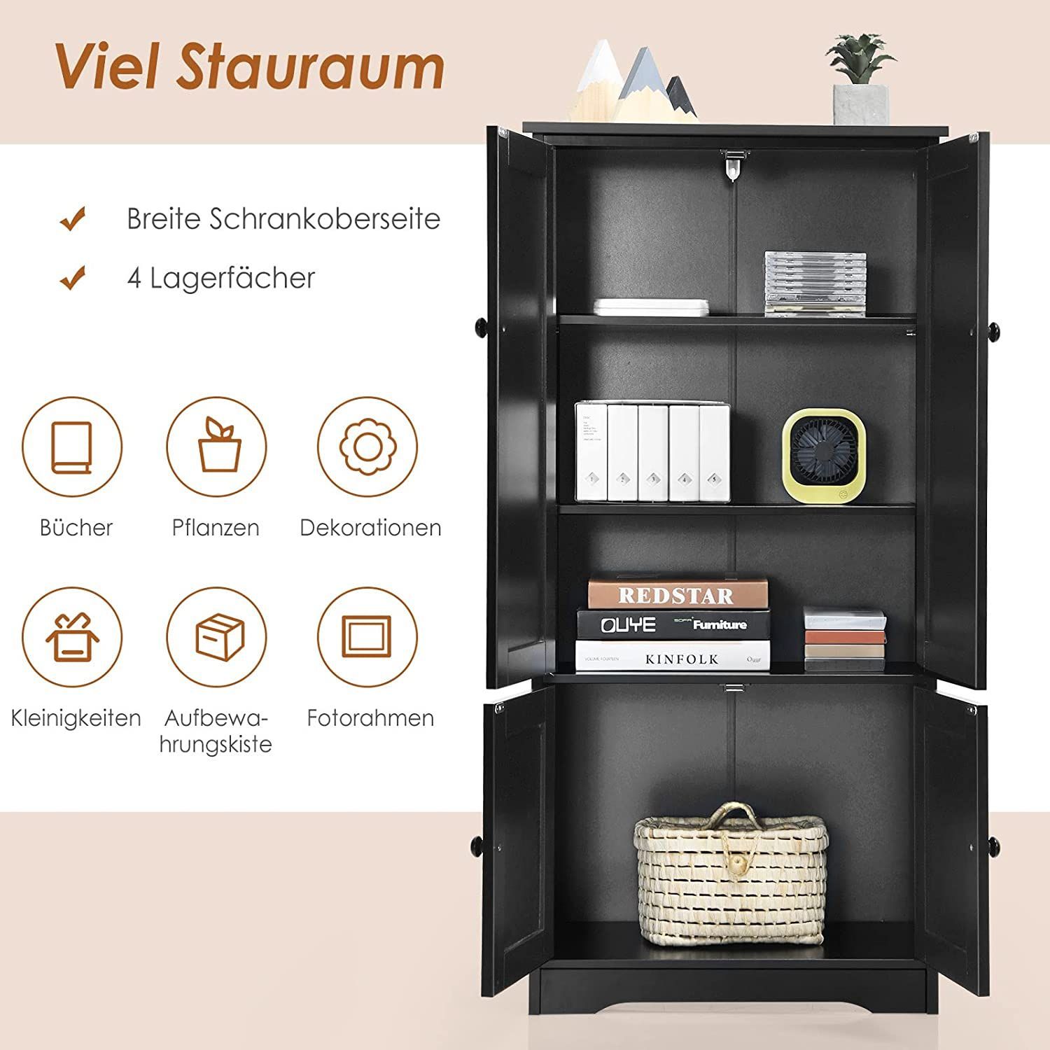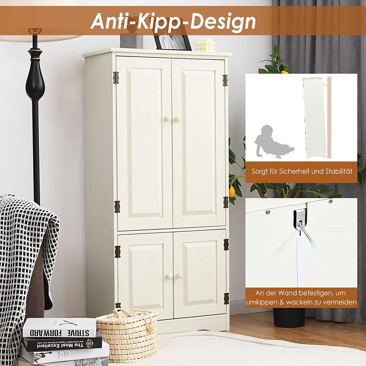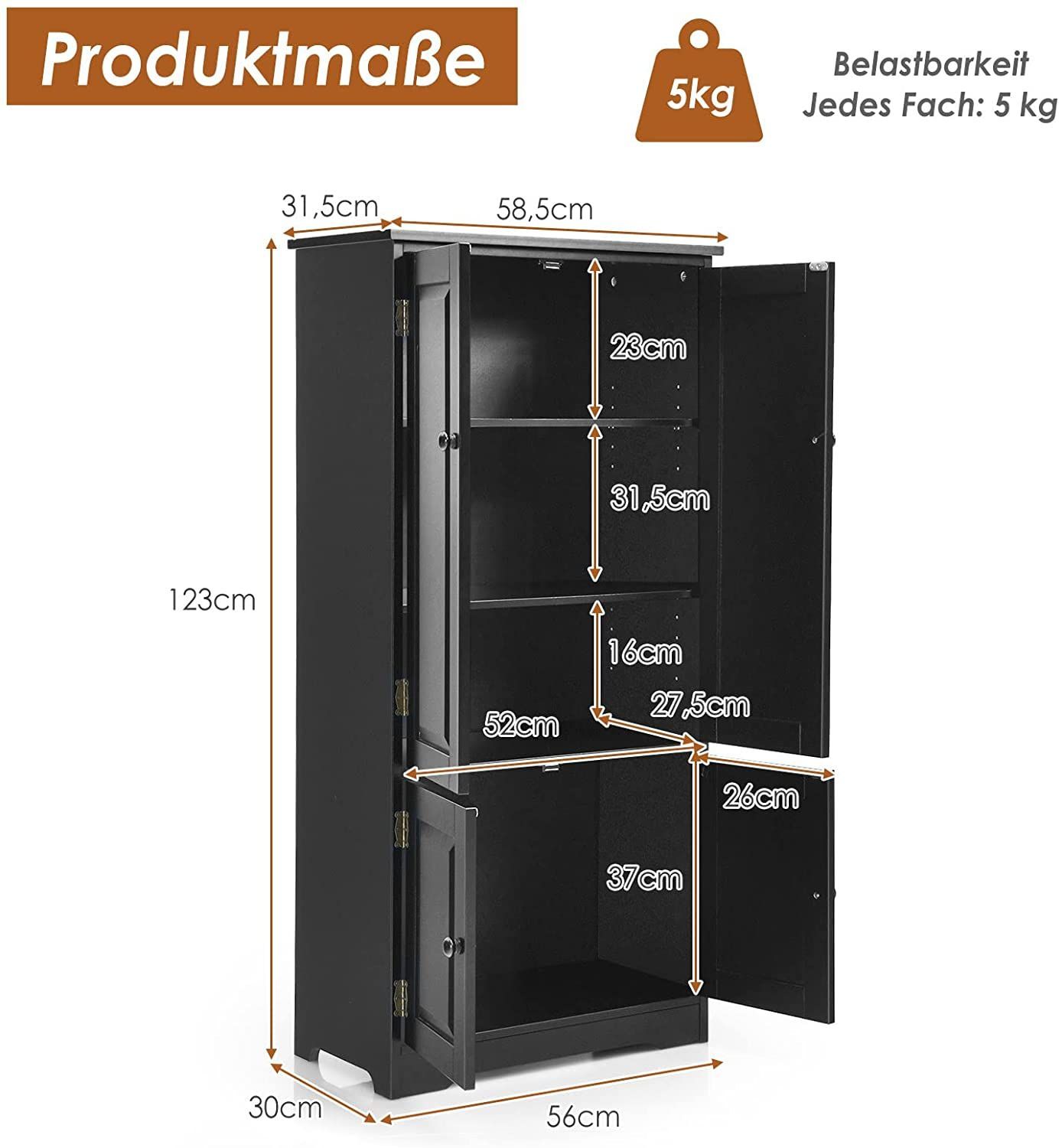 Mehrzweckschrank Vintage Flurschrank mit verstellbarem Regal Badschrank Wäscheschrank